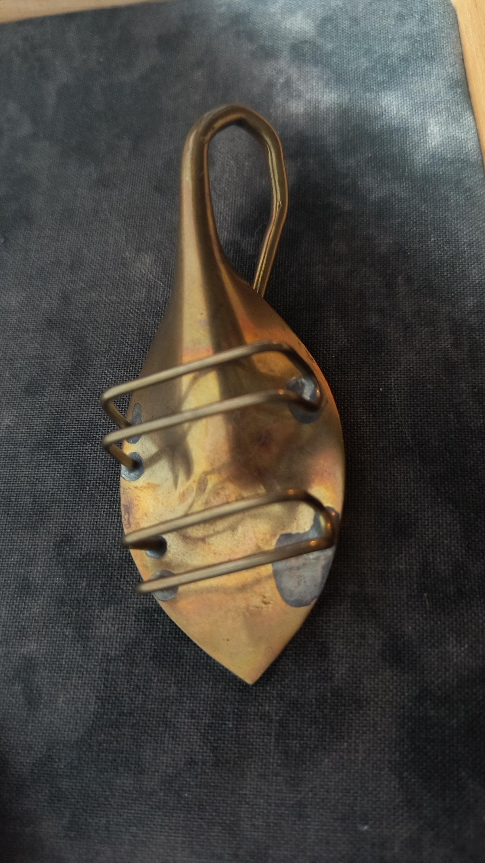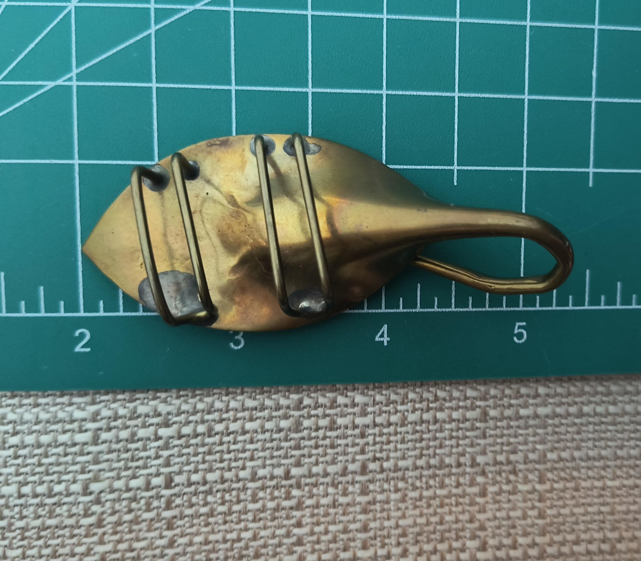 What a treasure! This antique buckle can be worn on leather or fabric, either as a slide or as a proper buckle, fastening a belt. (Just weave the two ends of the belt through the two fasteners!)