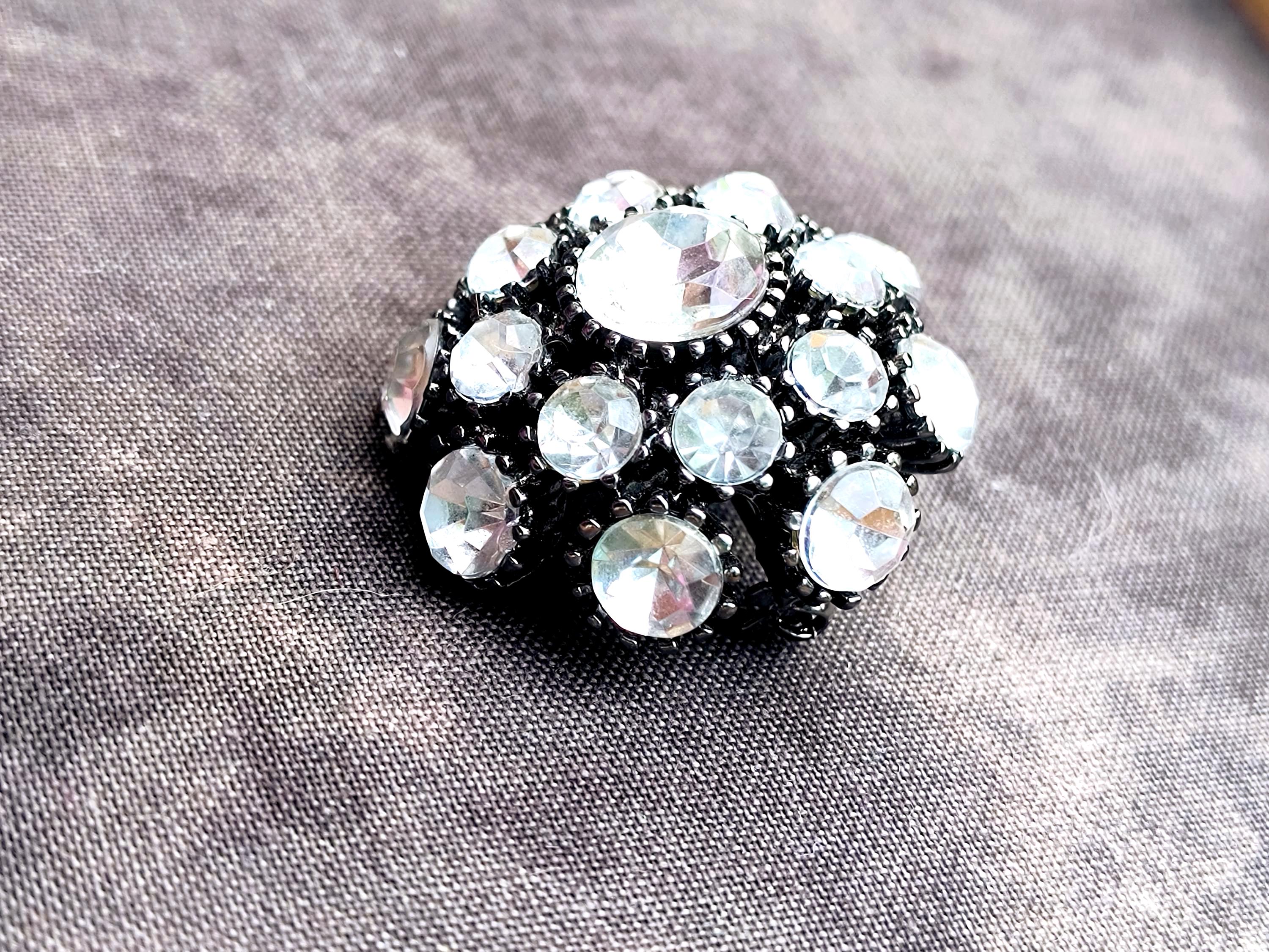 Here's a fun take off on a Victorian Era staple - the gemstone dome, often seen in a brooch or ring! This particular piece is in immaculate condition, with tons of goth sparkle!