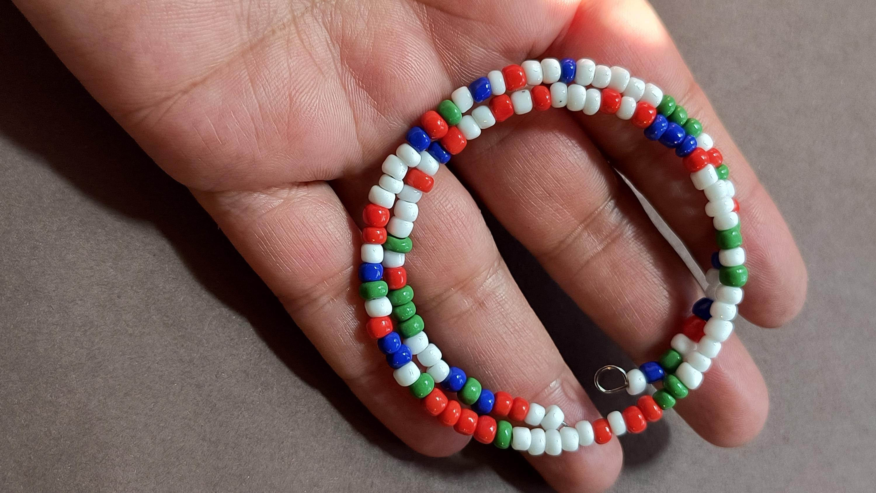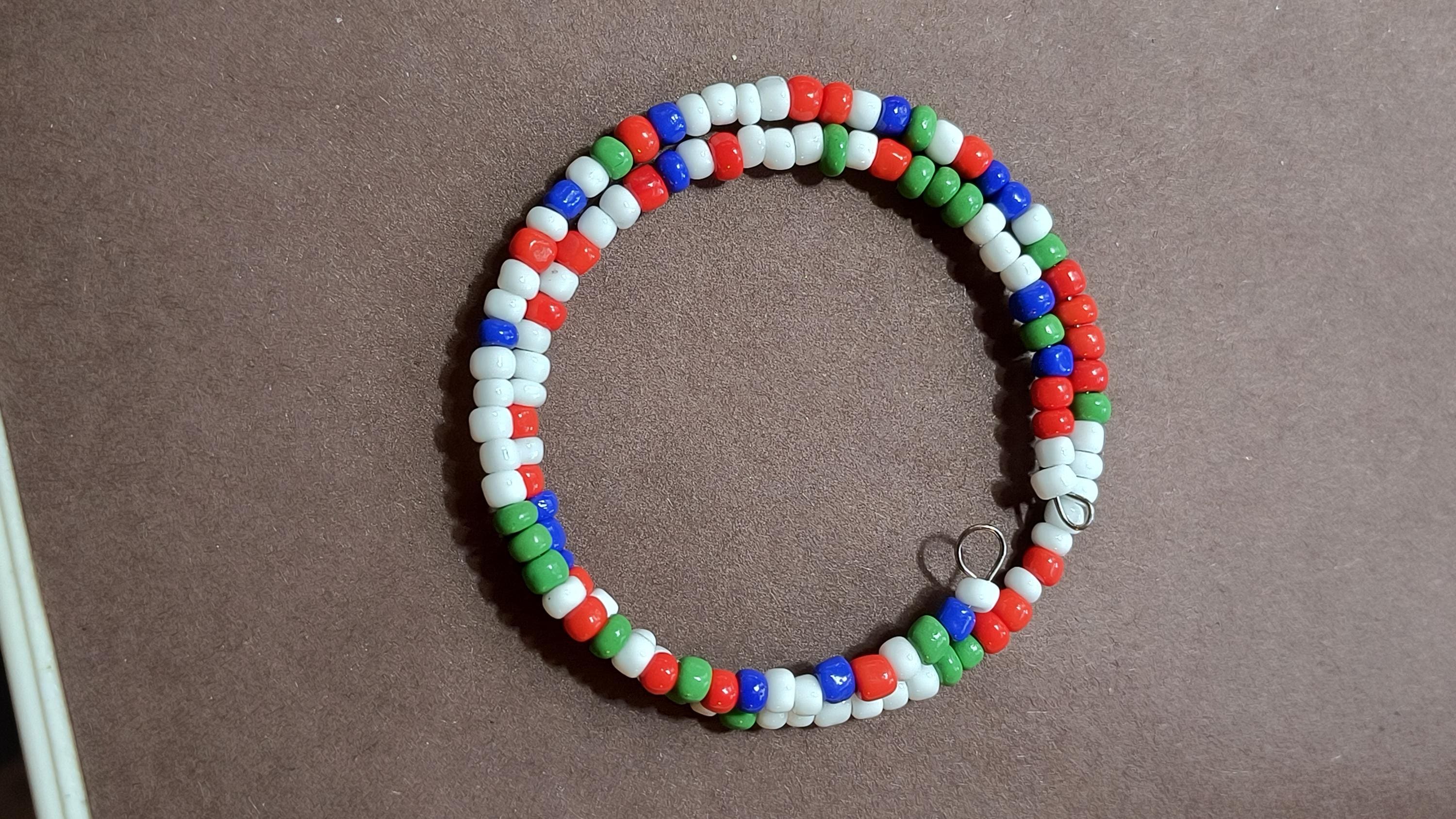 I've used the colors of the Earth and Sy, Water and Air to make this one of a kind bracelet. This can be worn as is, or small charms can be hung from the loops at the end of the memory wire.