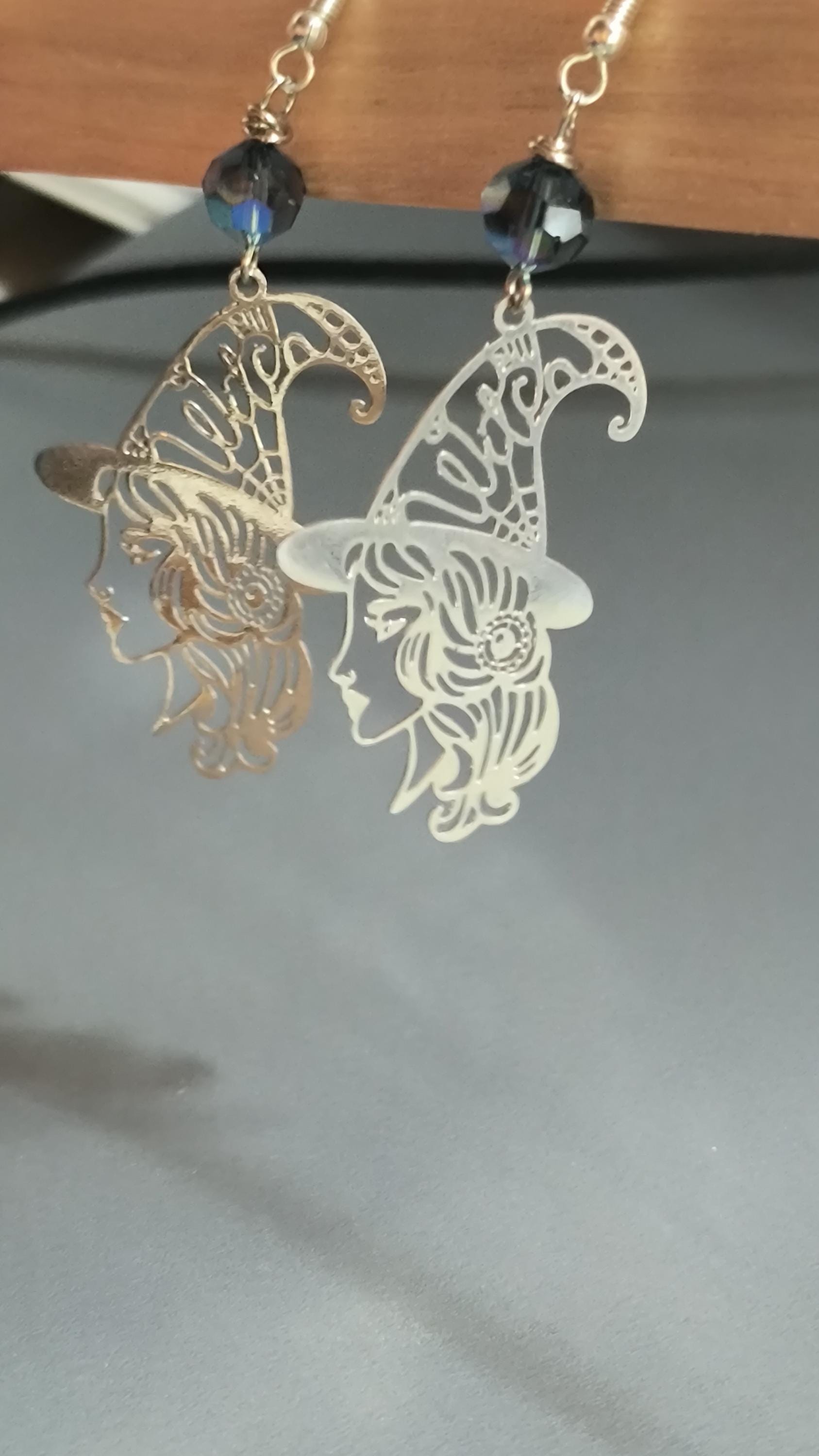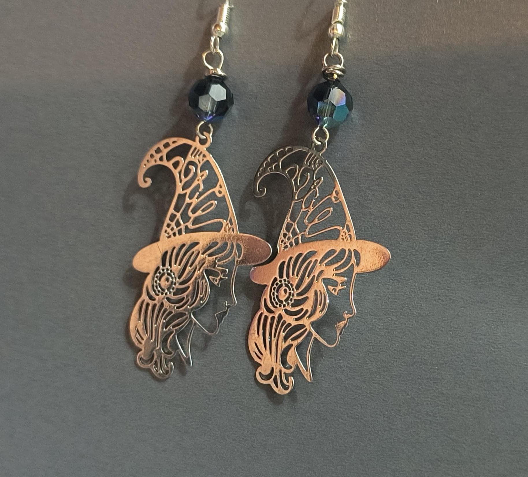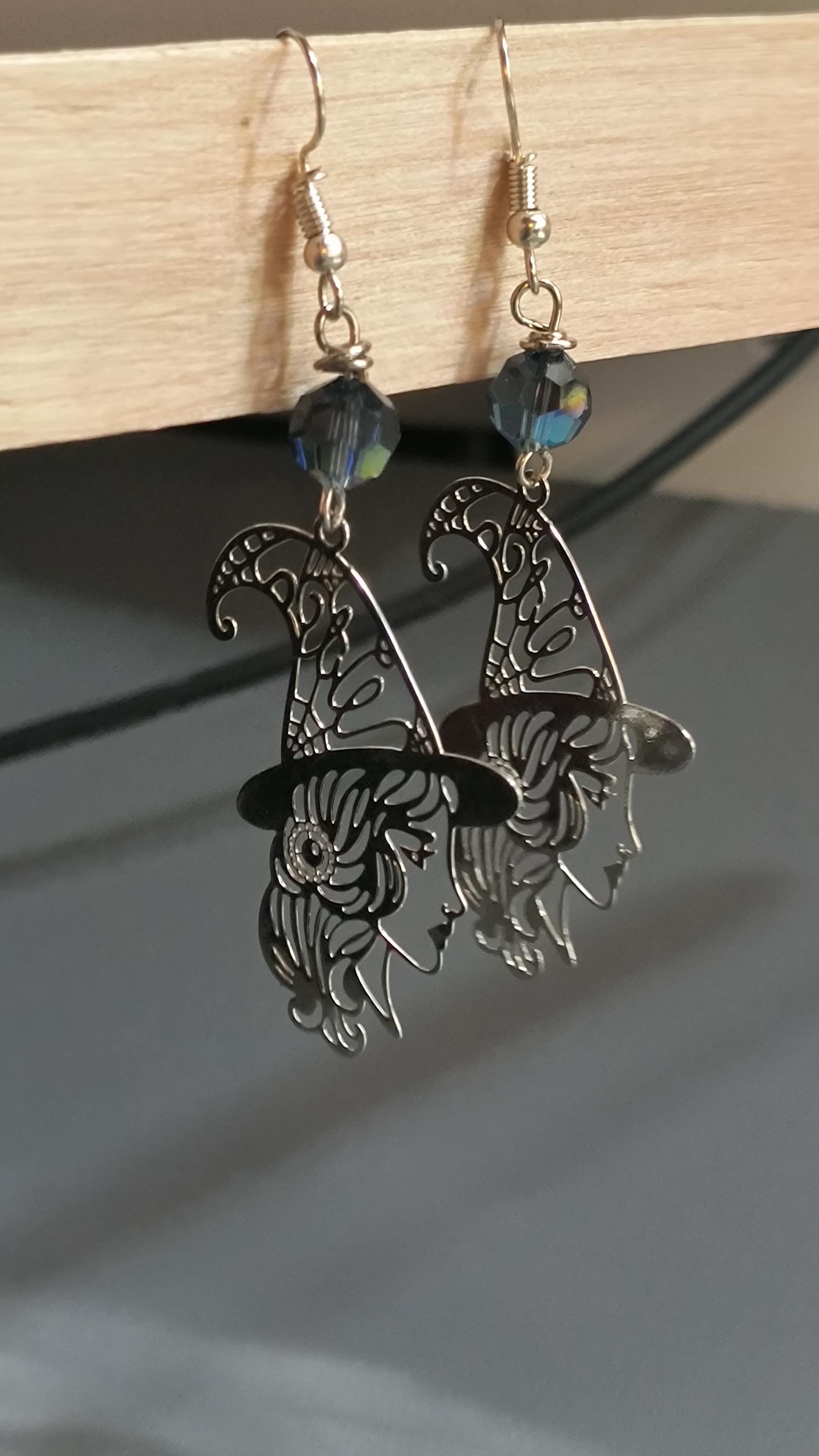 I love how these turned out! The witch heads are laser cut from bright, light silver metal - see the WITCH written into the hat? I've added deep blue crystal beads for a bit of color!