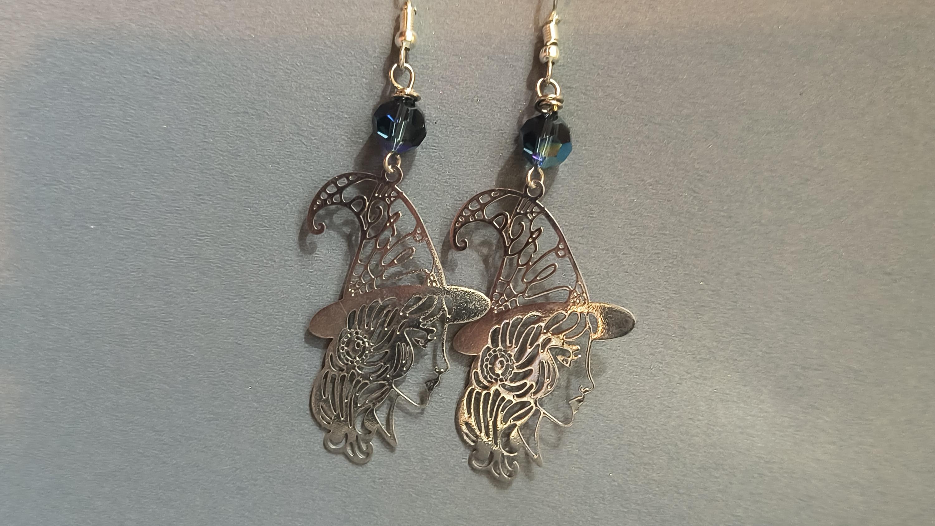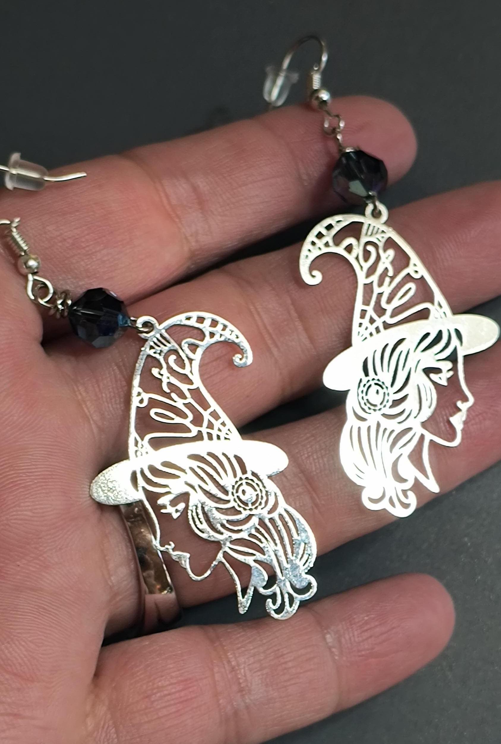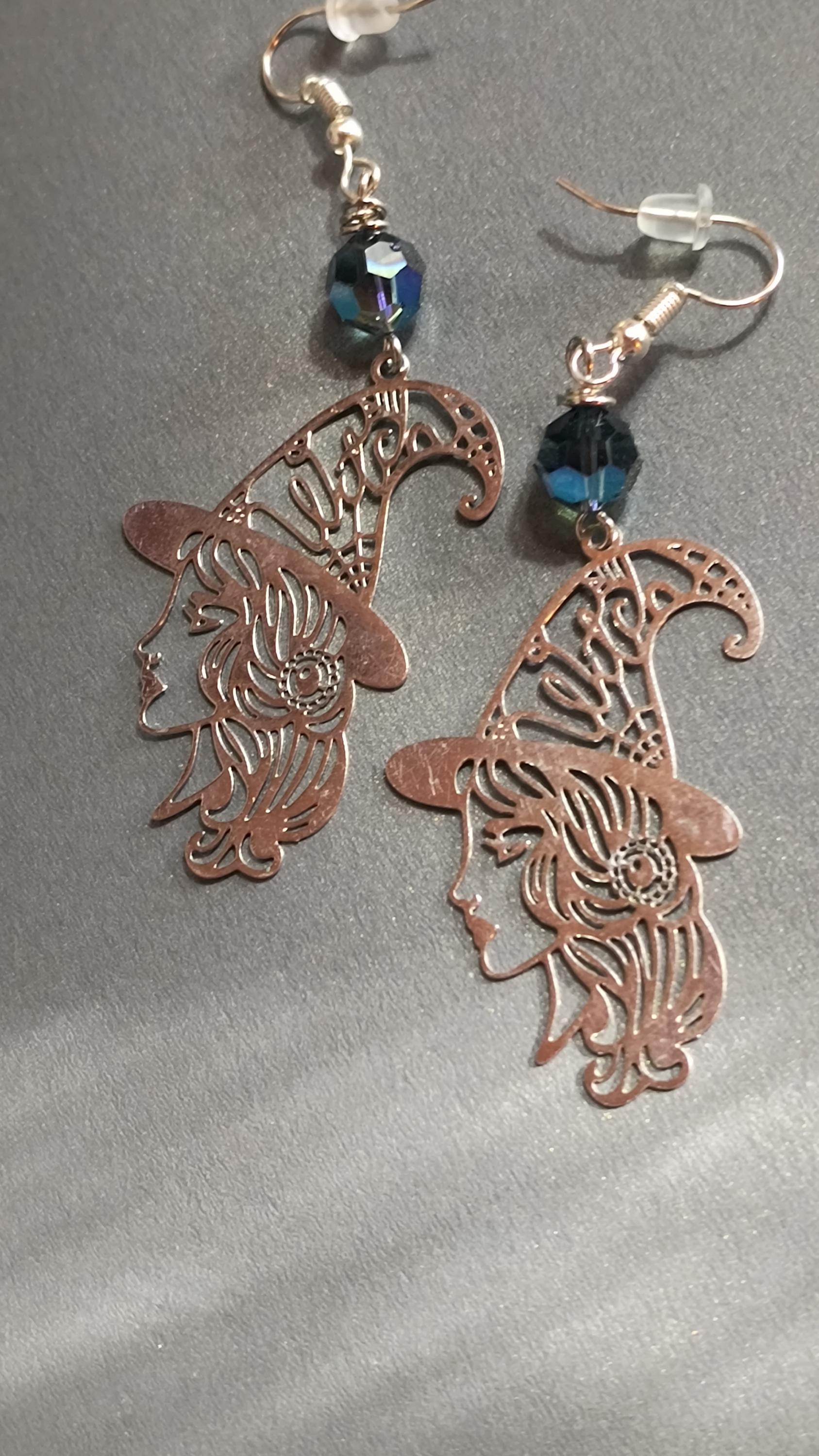 I love how these turned out! The witch heads are laser cut from bright, light silver metal - see the WITCH written into the hat? I've added deep blue crystal beads for a bit of color!