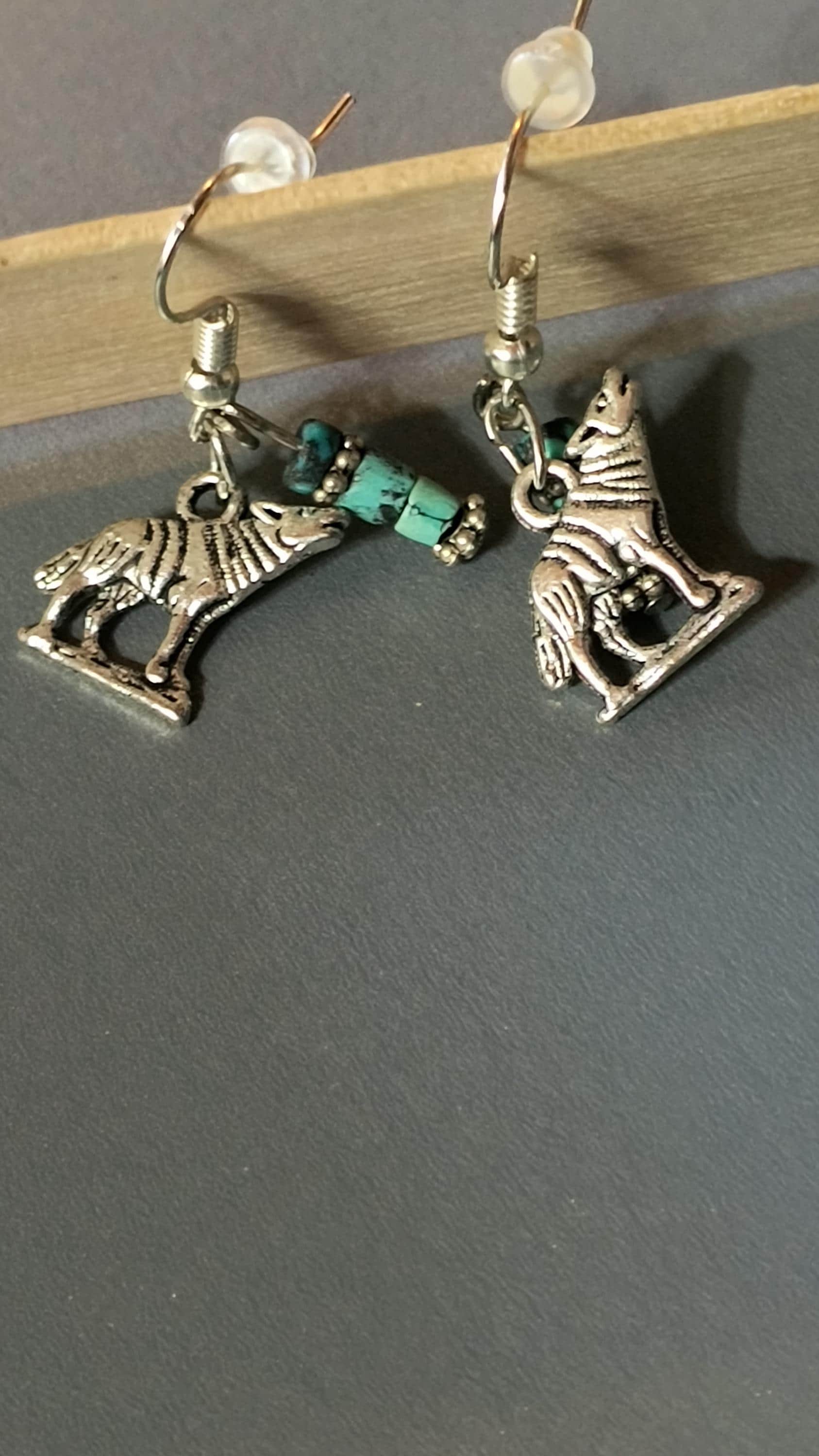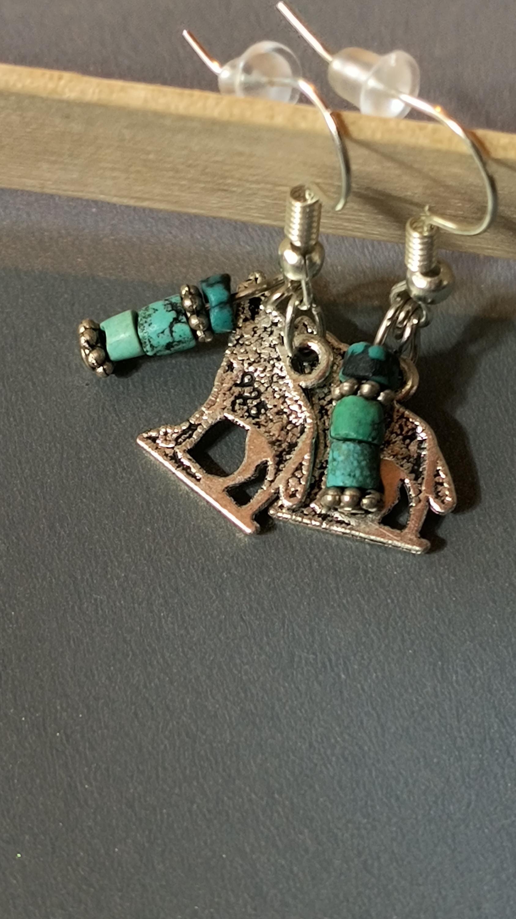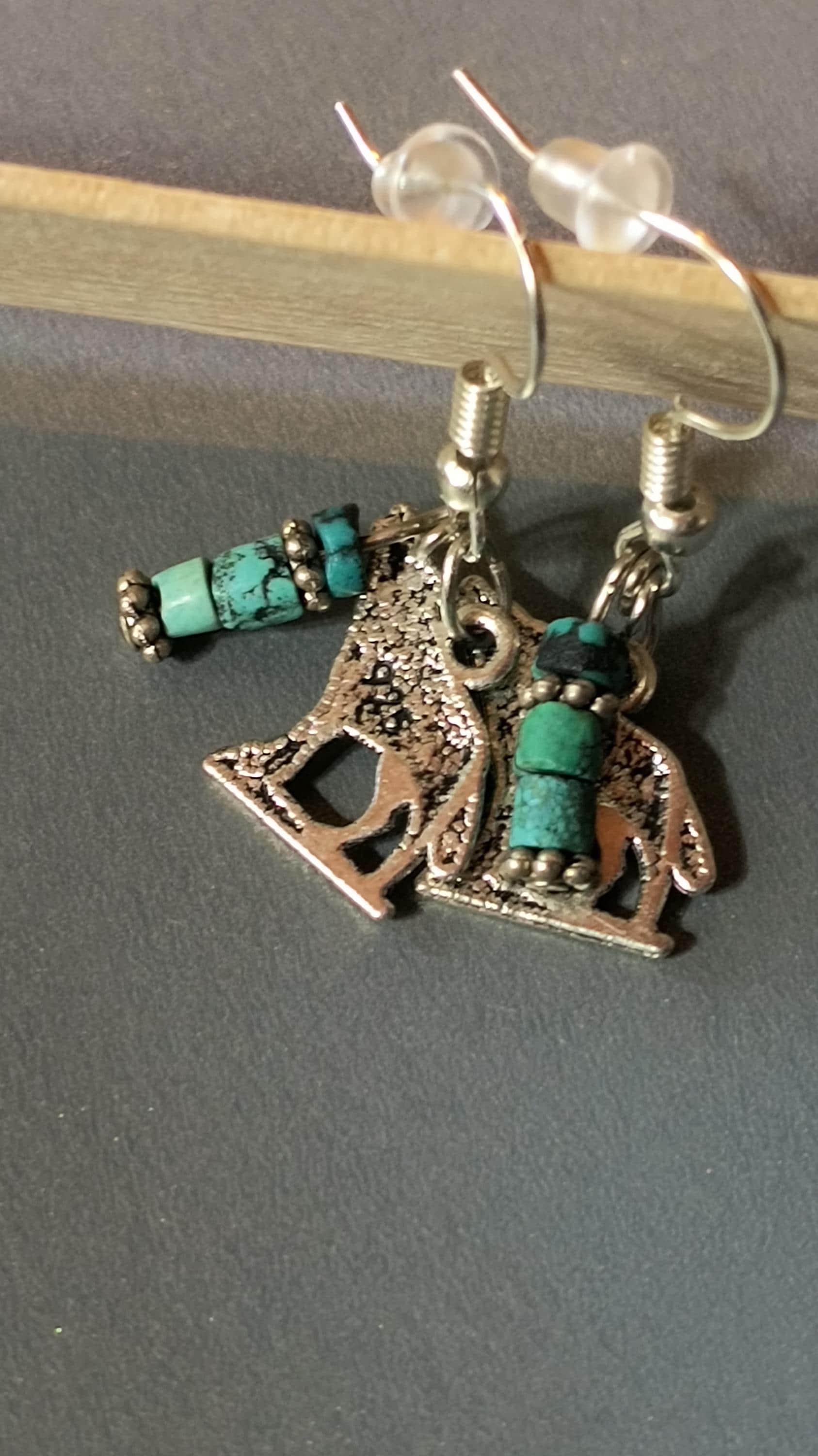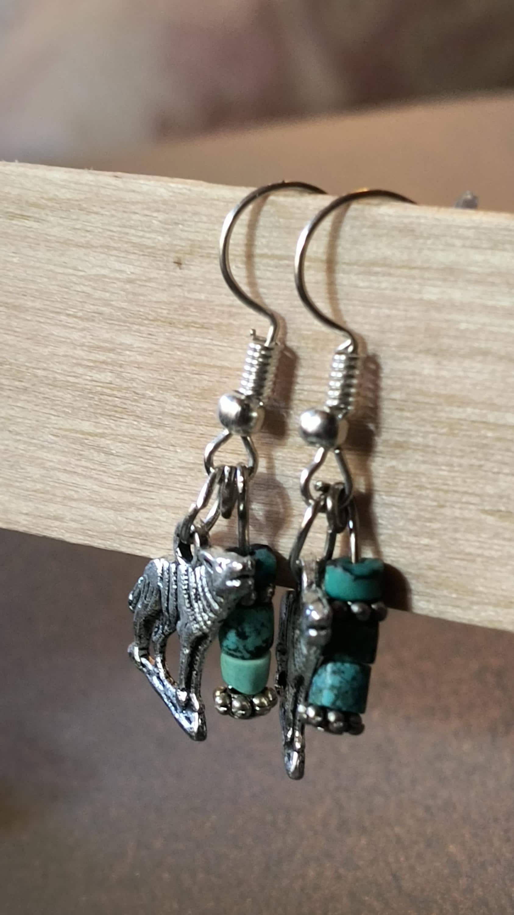 These little wolf drops are sweet enough on their won, but I wanted to add a little pop of color behind them! These are sterling silver - the turquoise beads behind them make it look like a wolf howling at the Northern Lights!