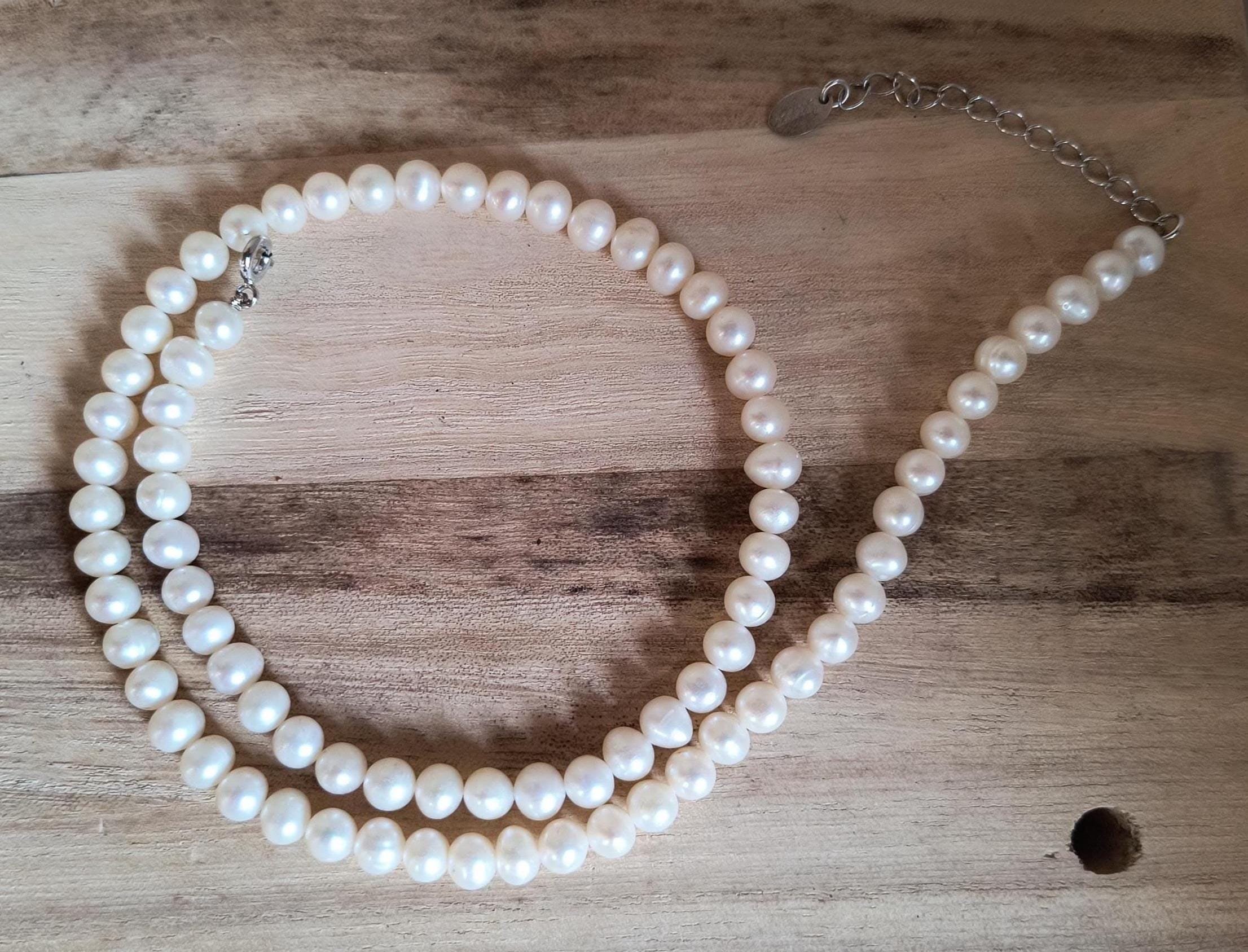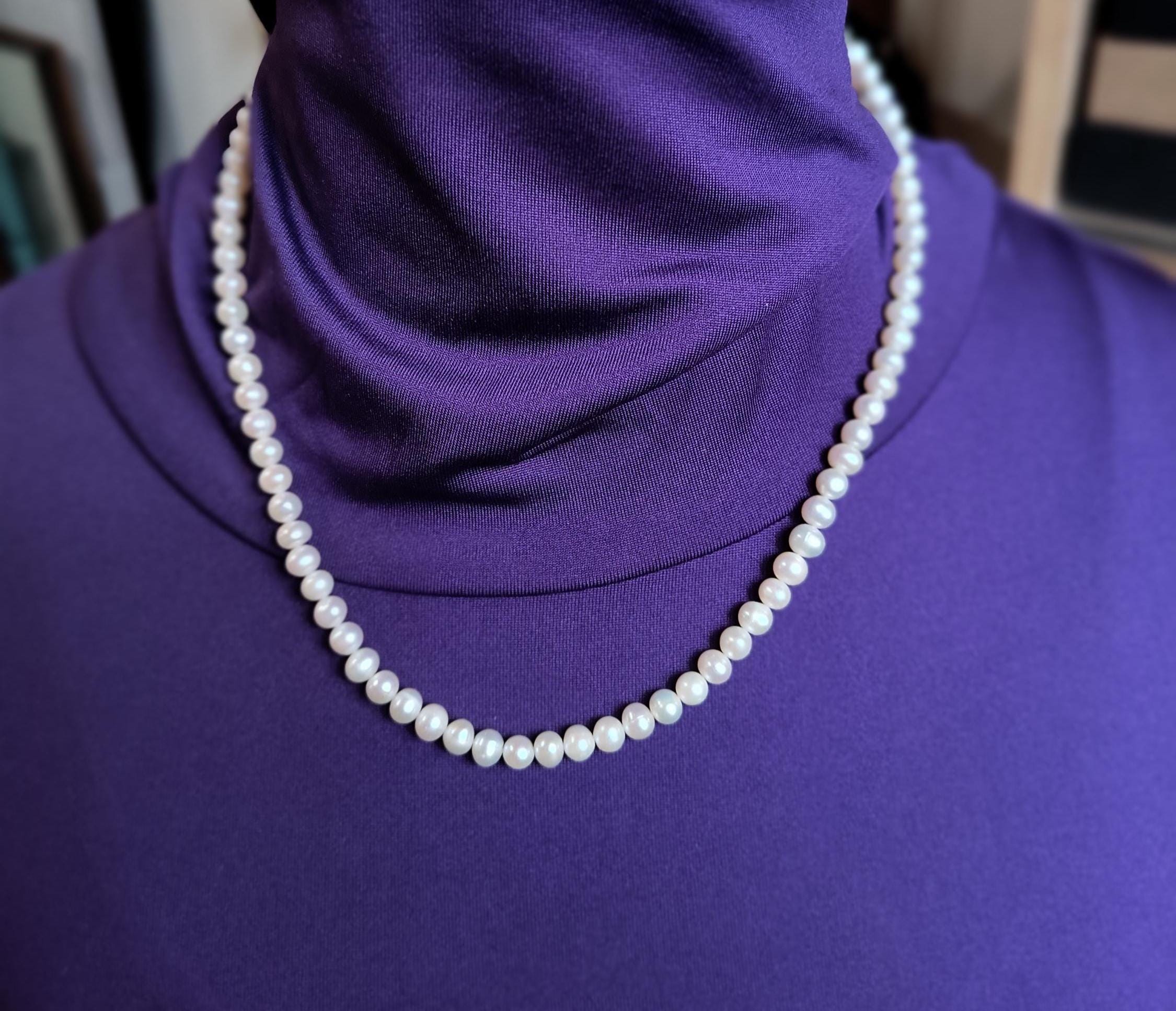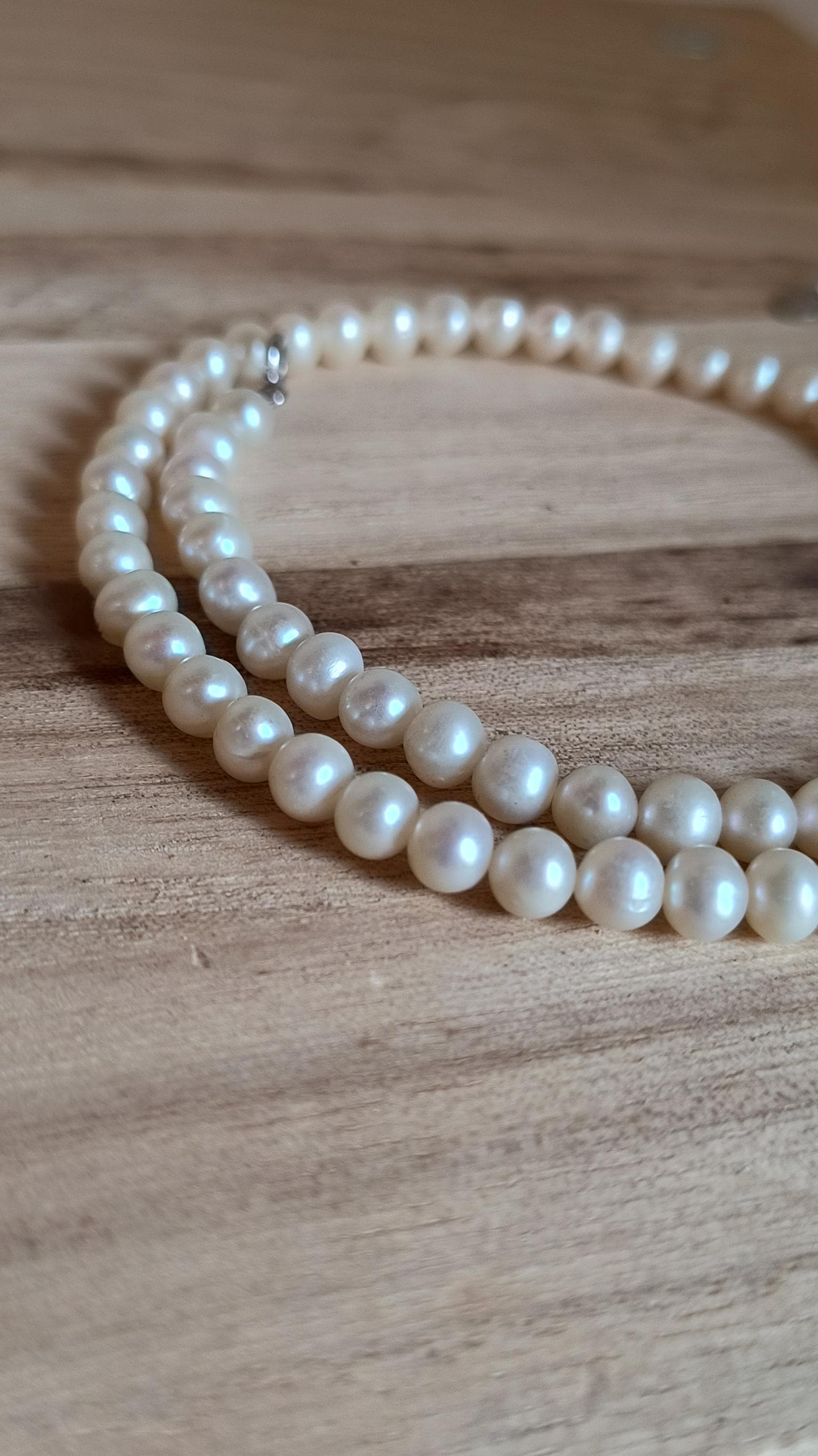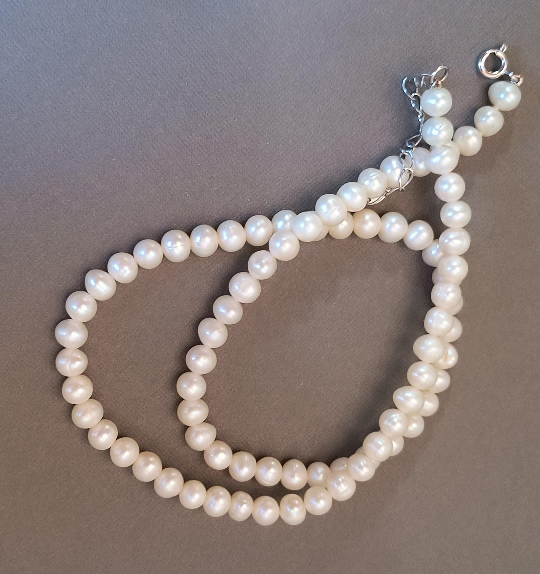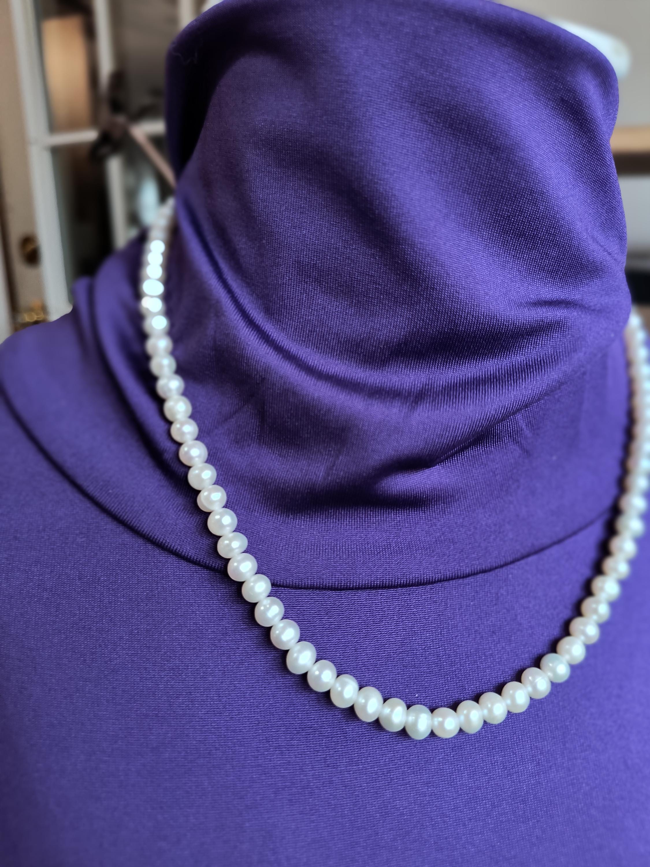 Vintage Pearl Necklace - Freshwater Cultured Pearls in Perfect White