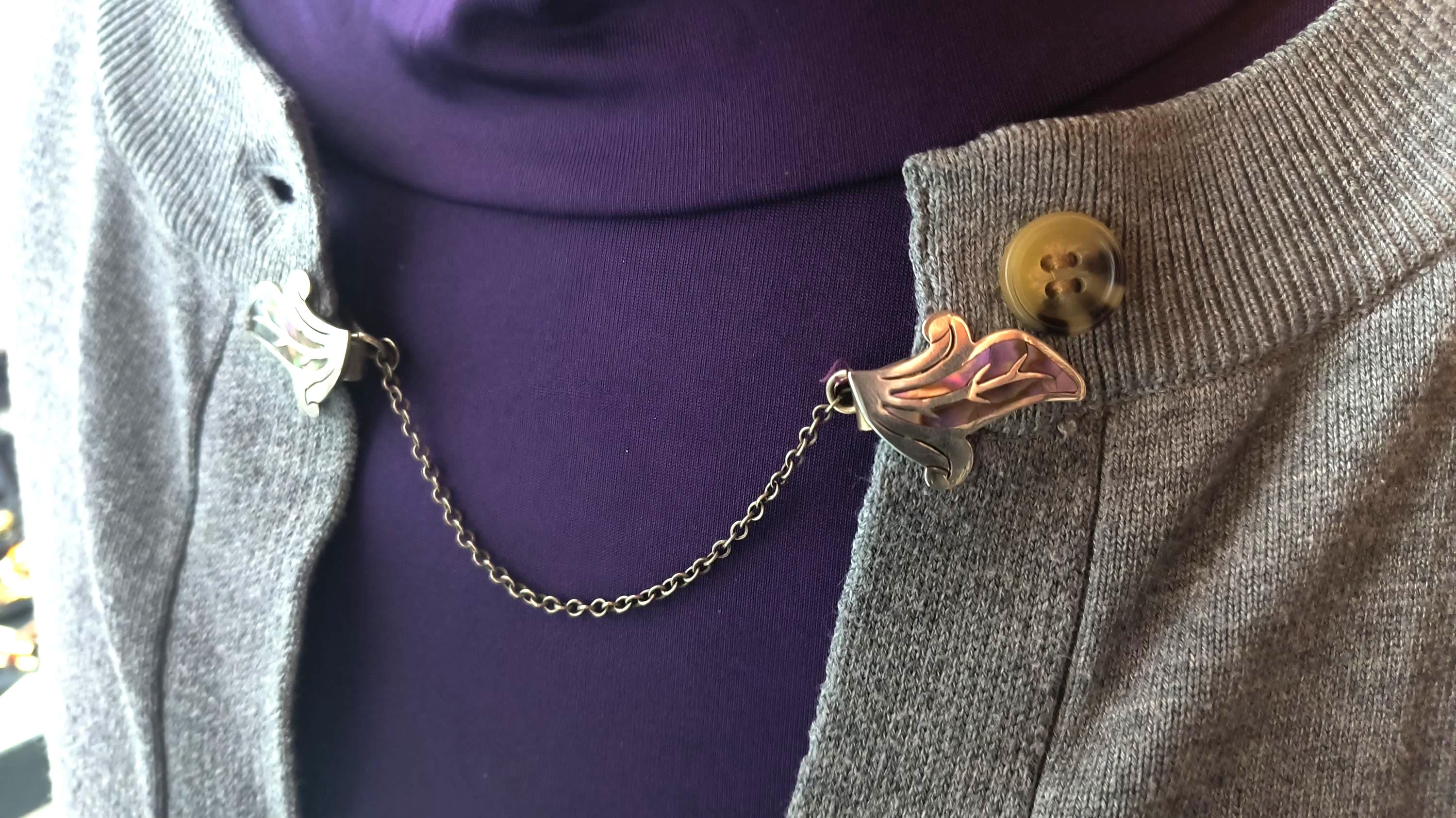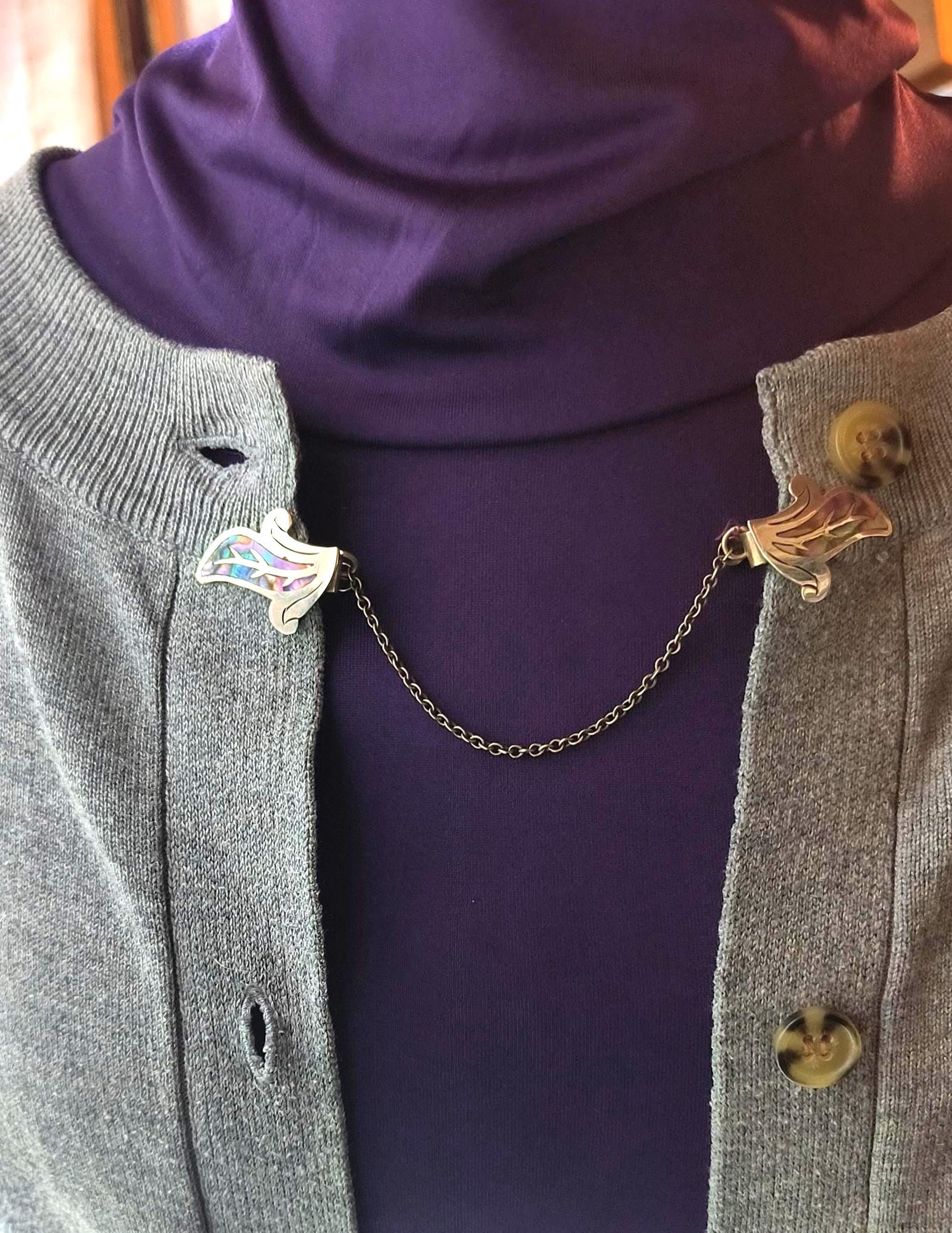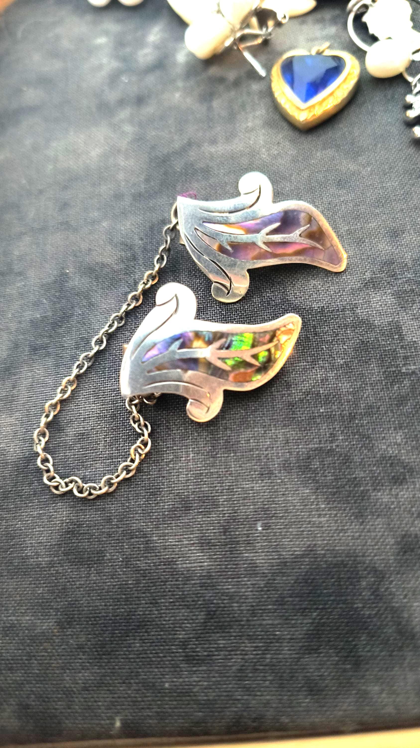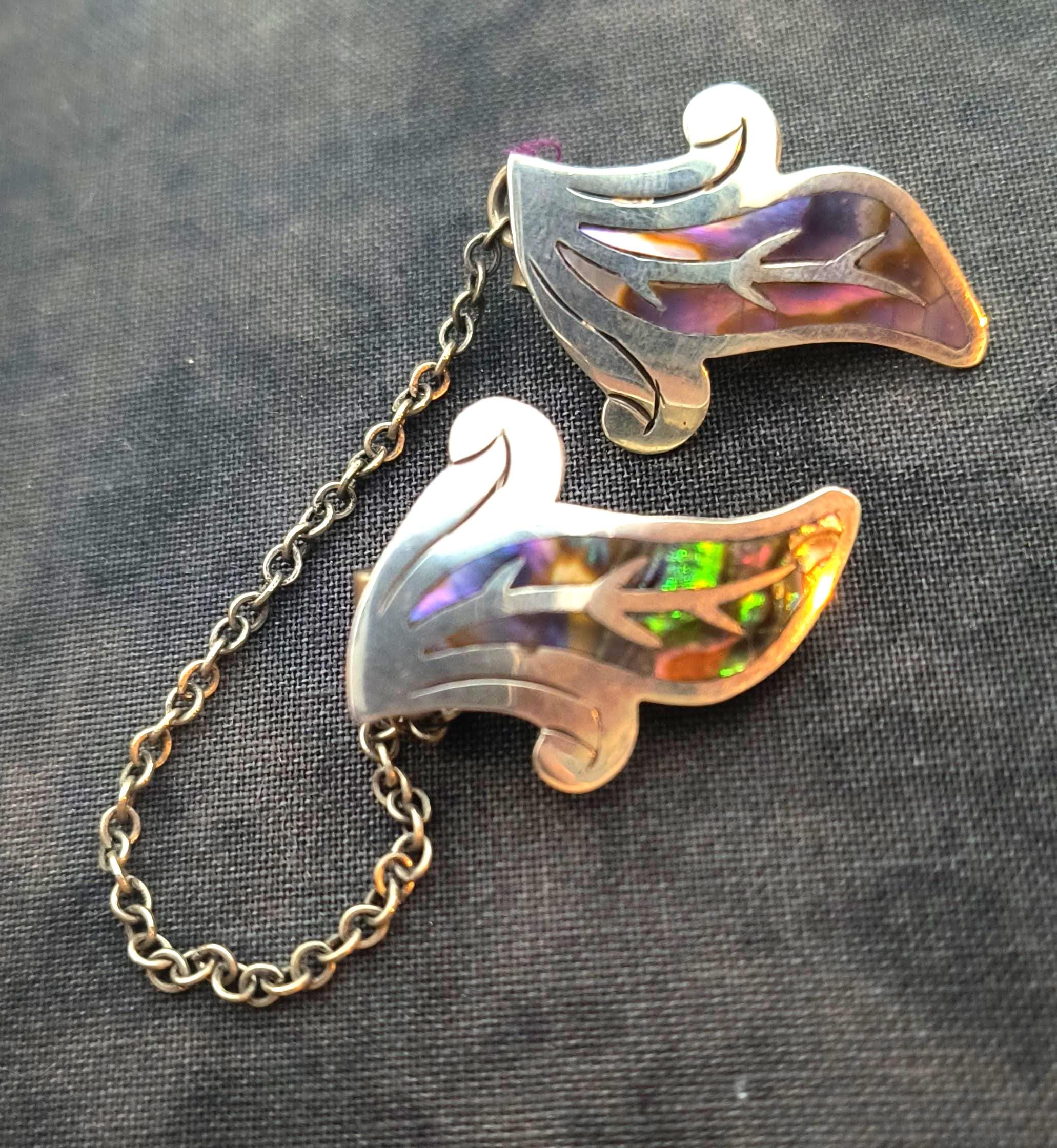 You can use this double ended clip to hold a pashmina or scarf over your shoulders.. a light weight cardigan, or even just to decorate a dress or suit jacket! This piece is sterling silver, and dates to the 1950s or so - a vintage piece from Taxco, Mexico with a ton of style! Corn traditionally represents abundance and fertility.