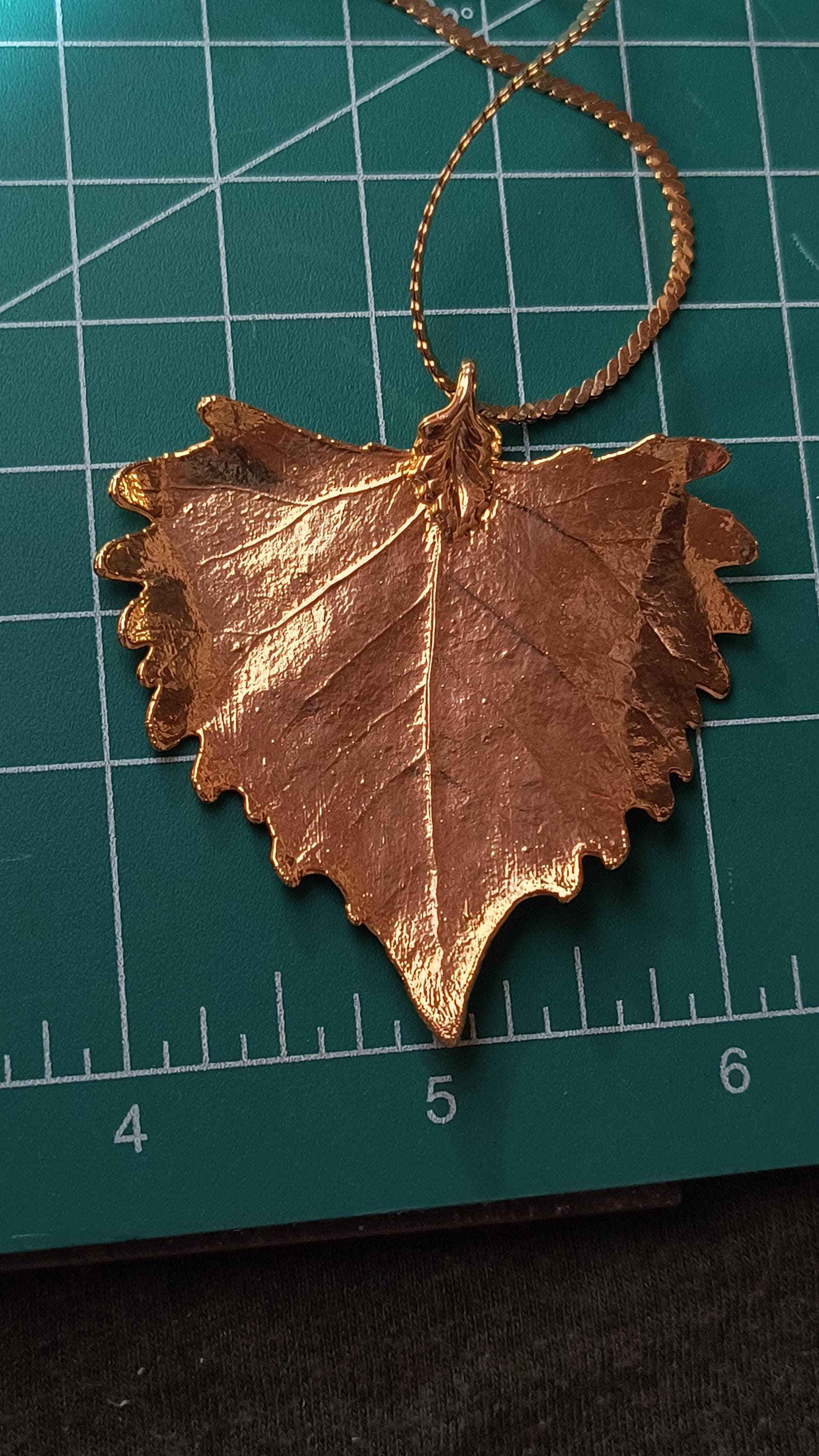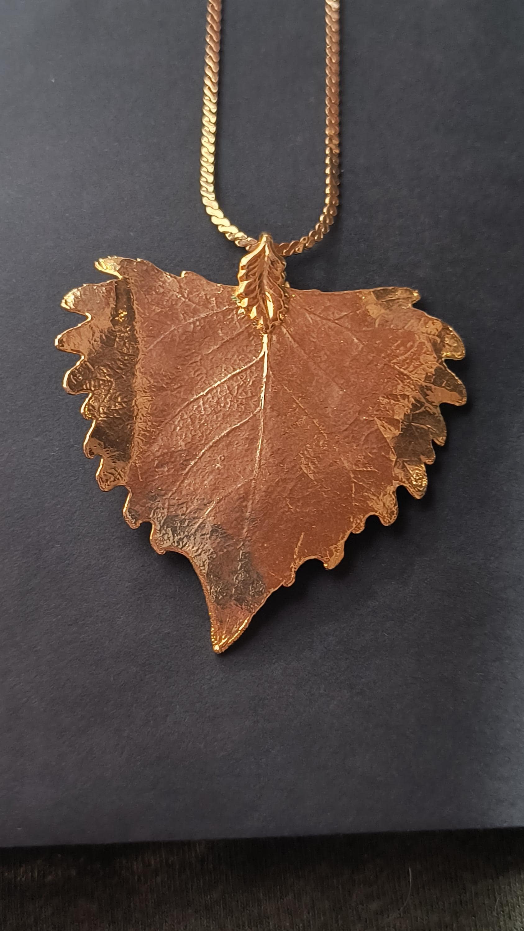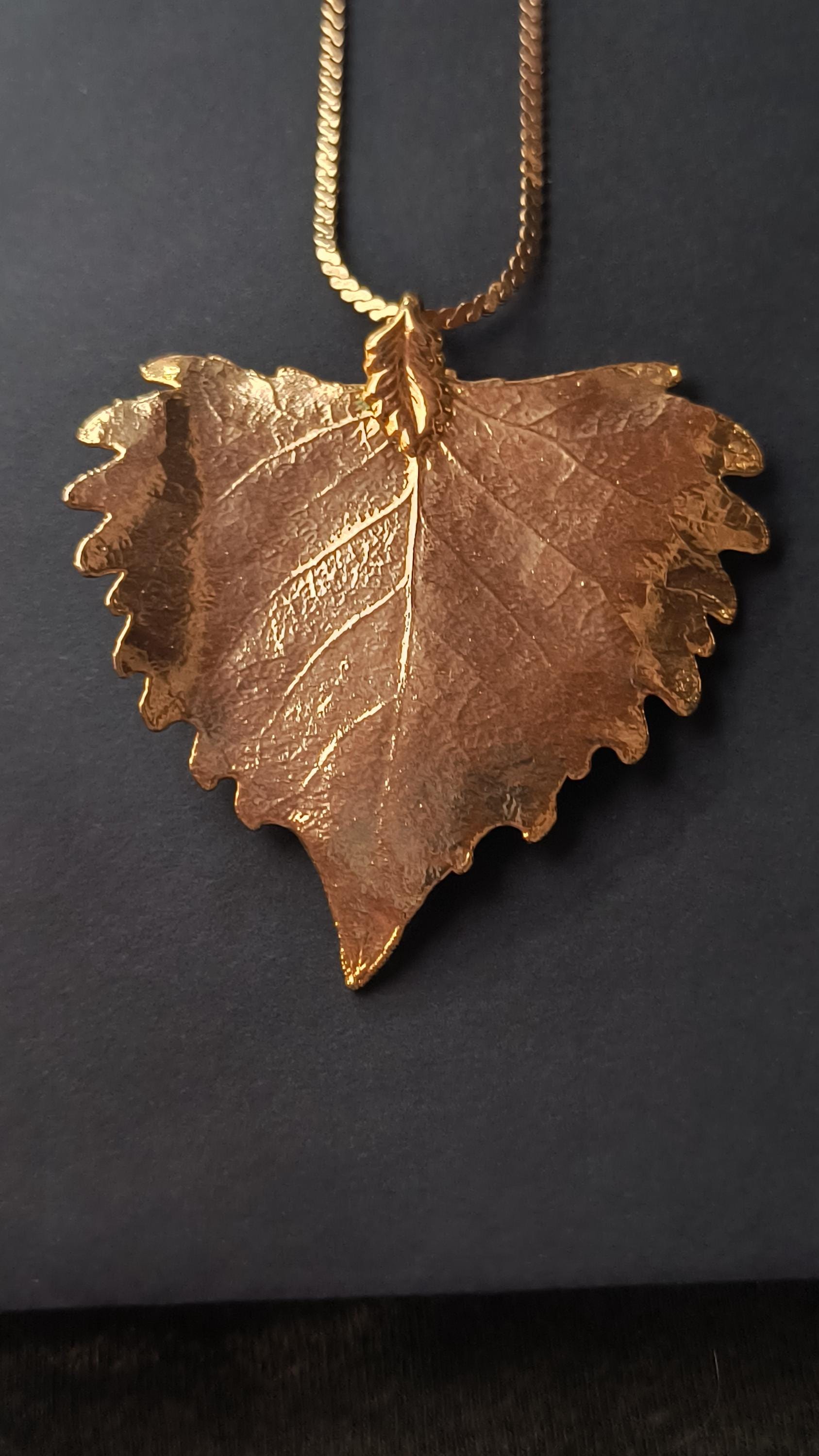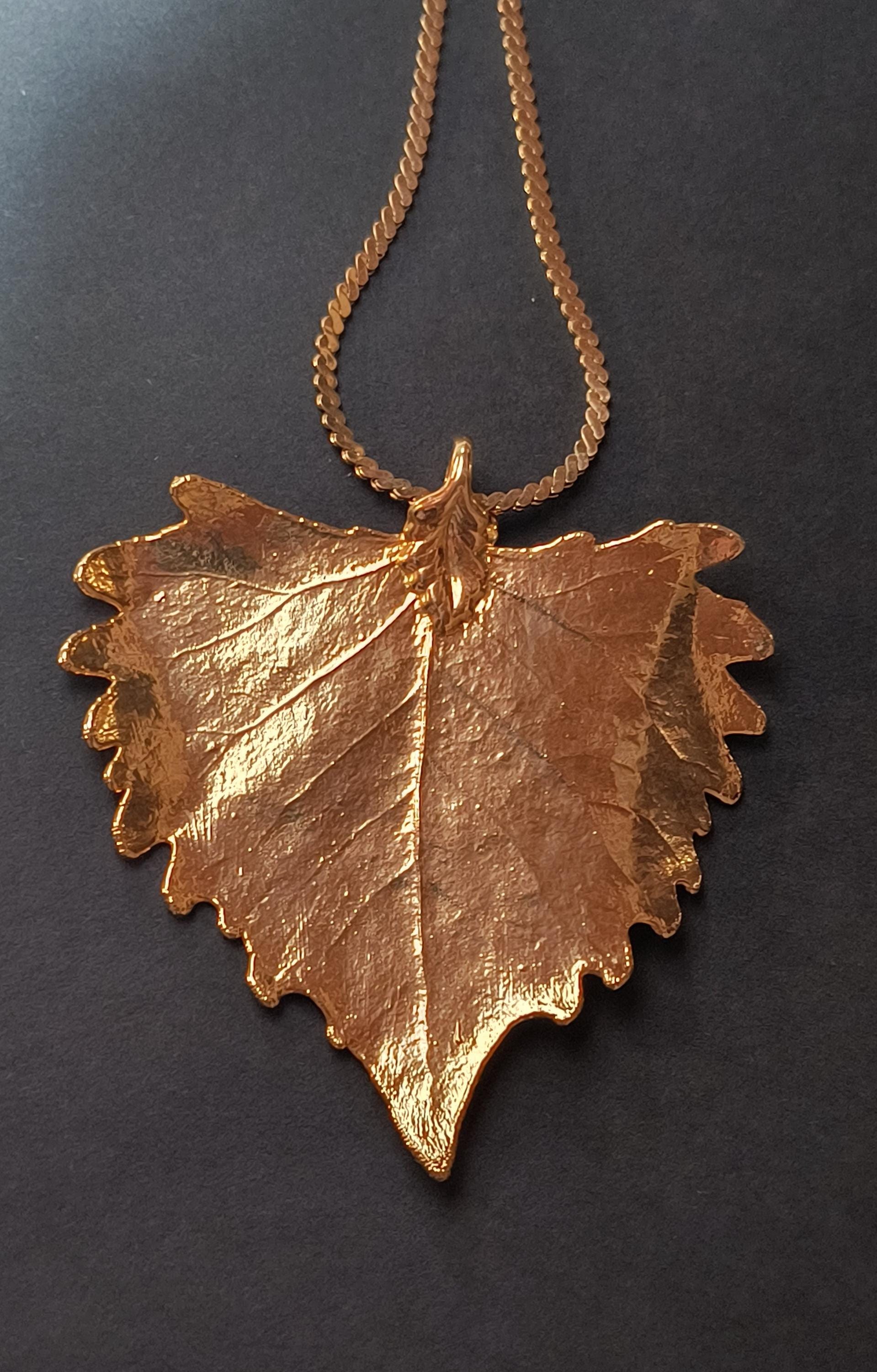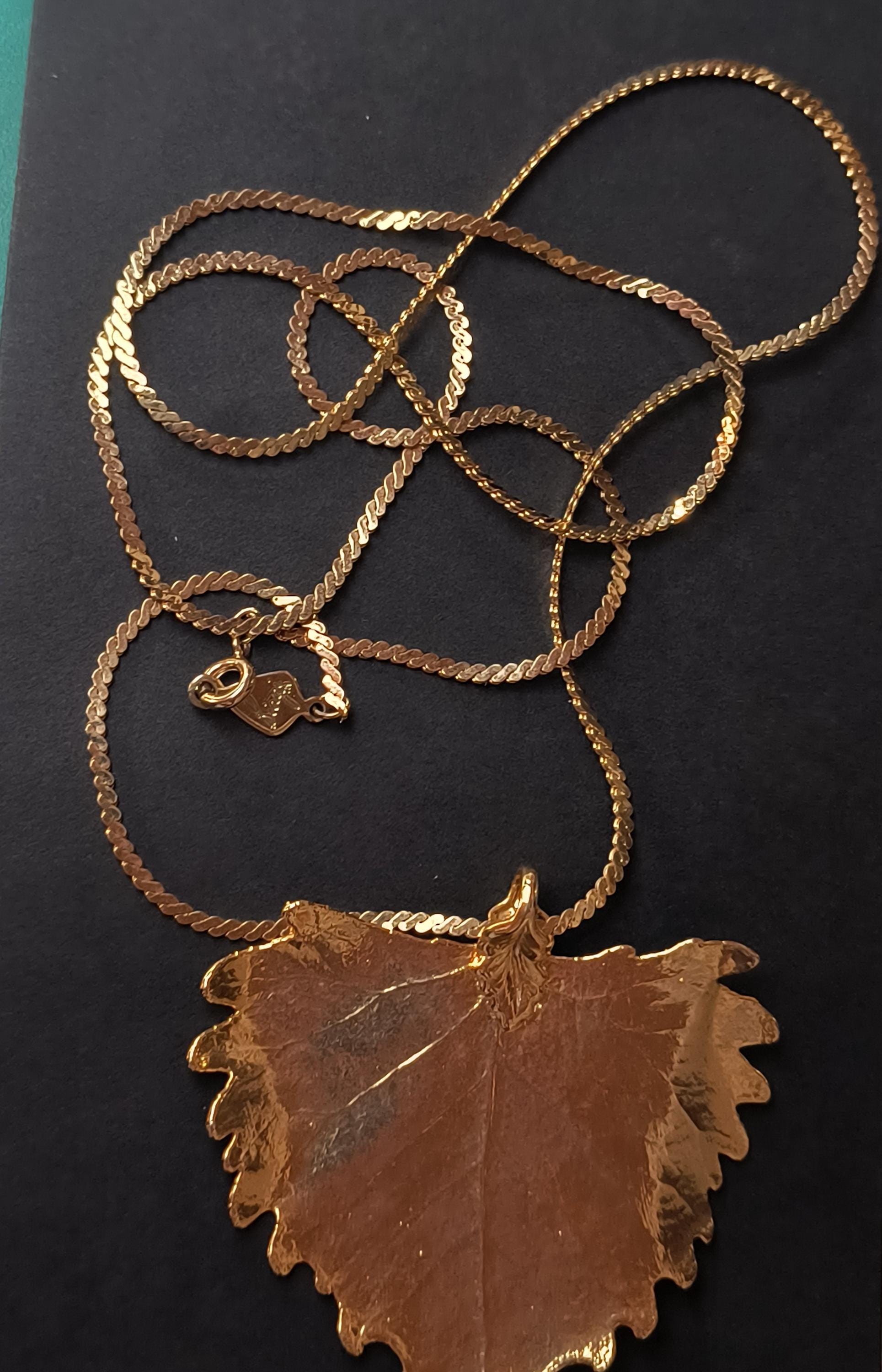 I do believe this is a Cottonwood leaf! It's really quite lovely, well defined and with excellent shine. Pendants like these were all the rage in the 70s and 80s - real leaves and berries, and other Botanicals, Dipped in pure, high karat gold. *Arrives strung on a ribbon for gifting, please send a message if you'd like a chain!