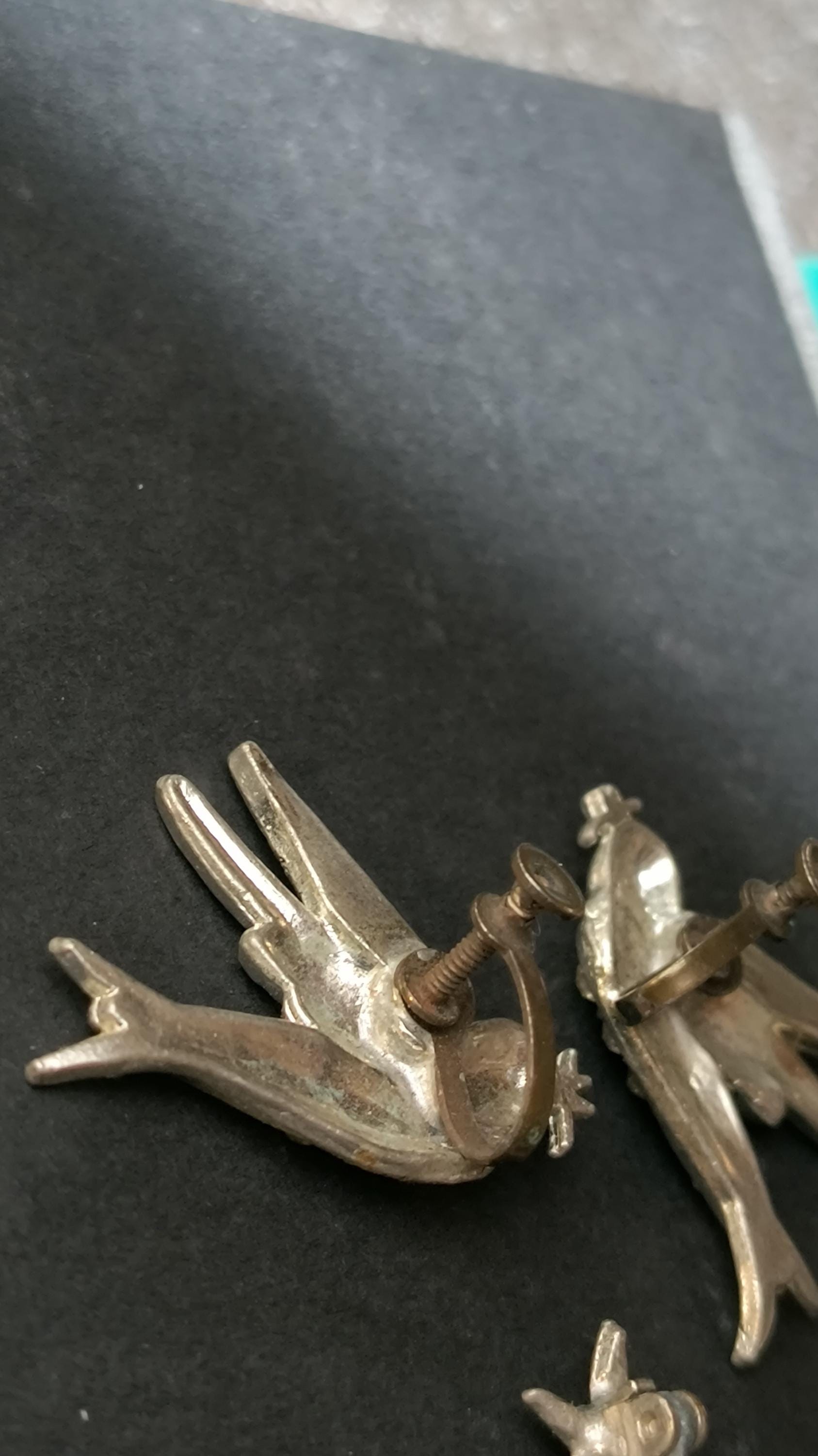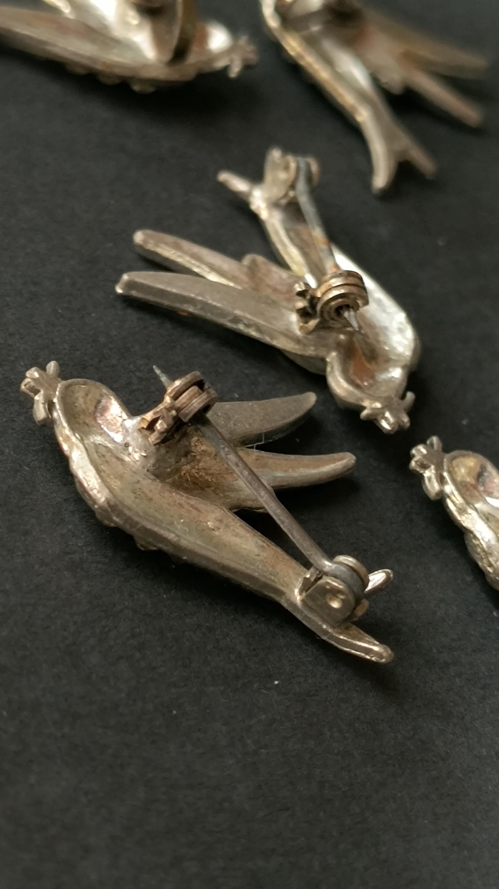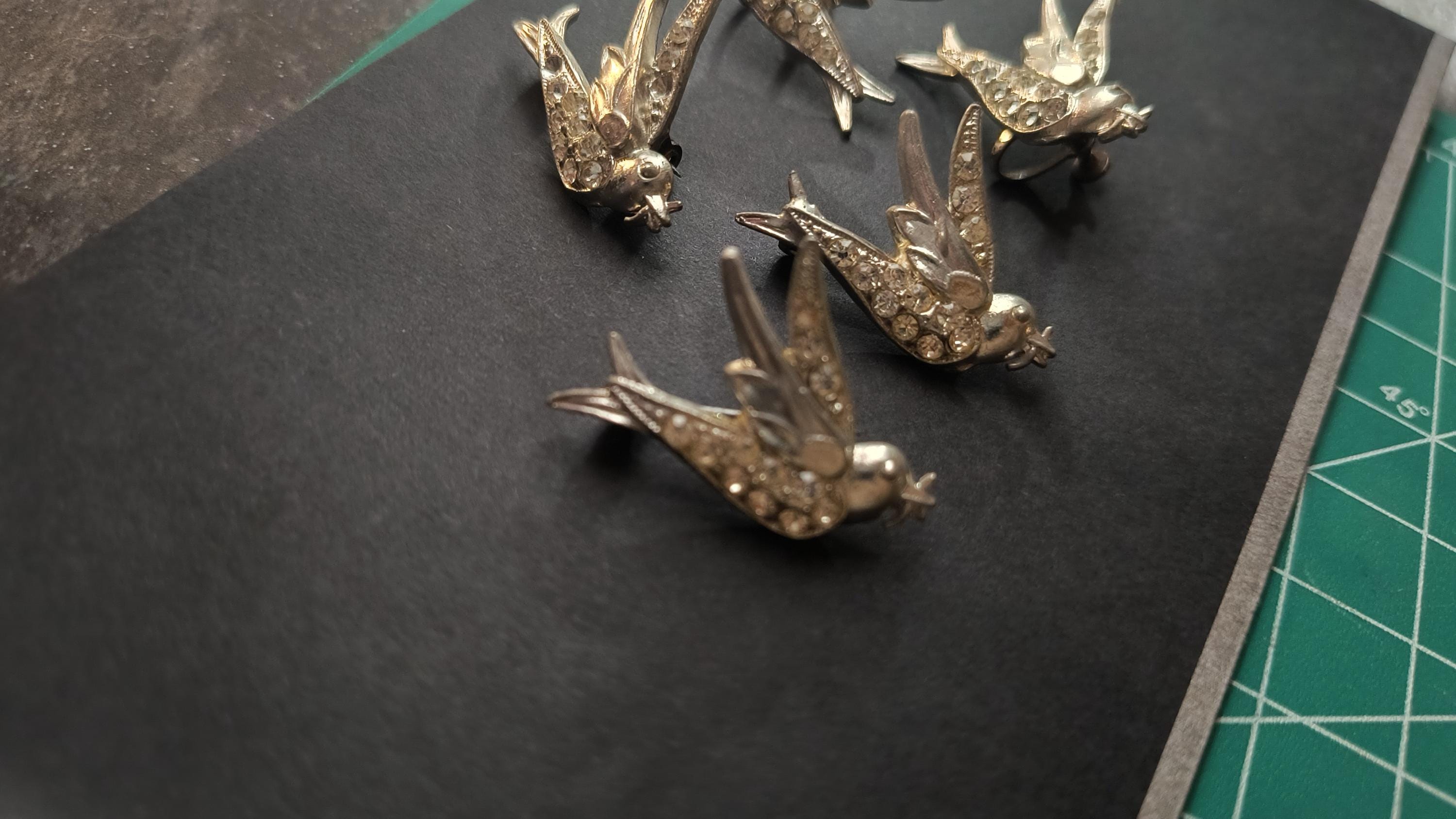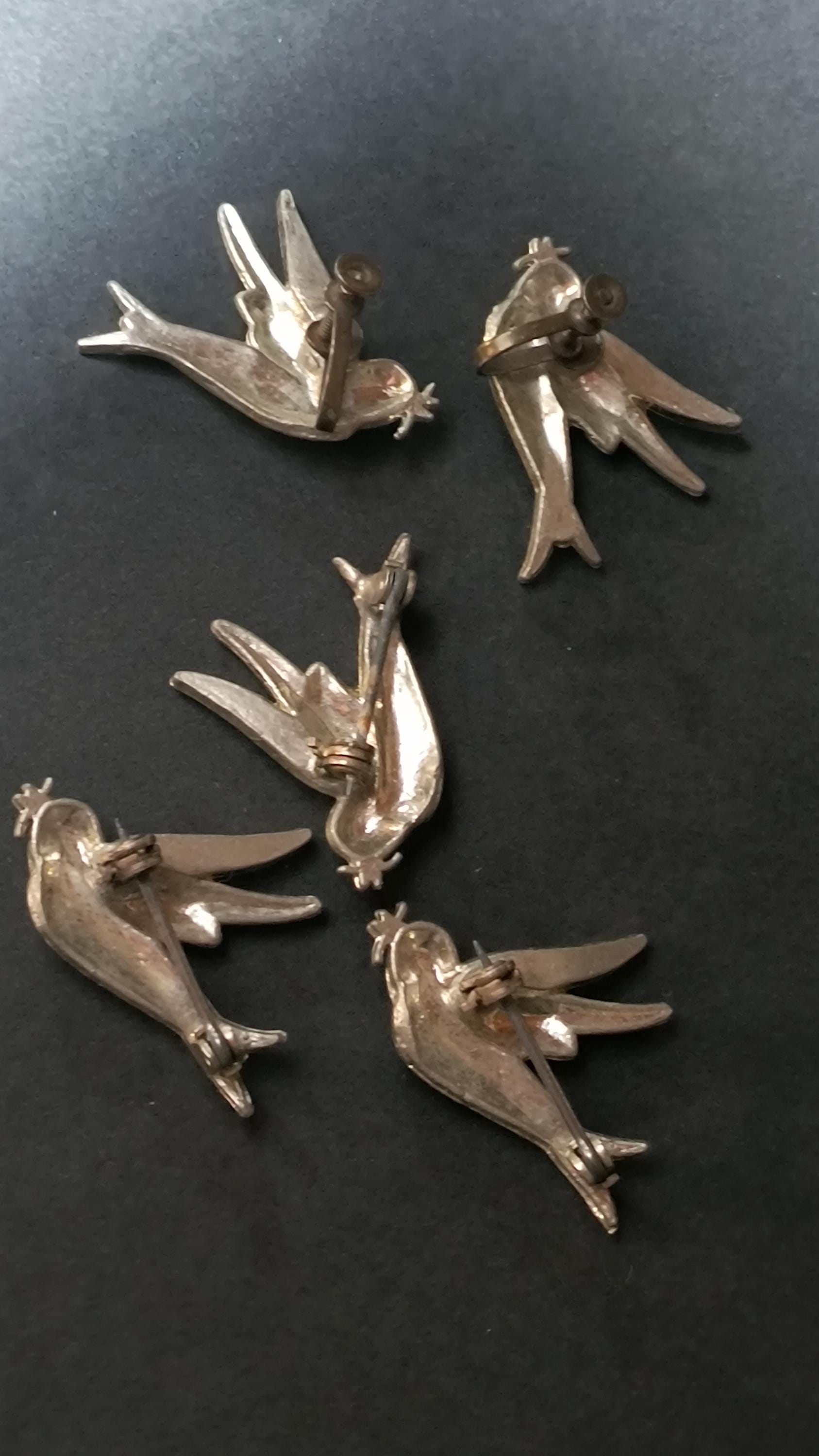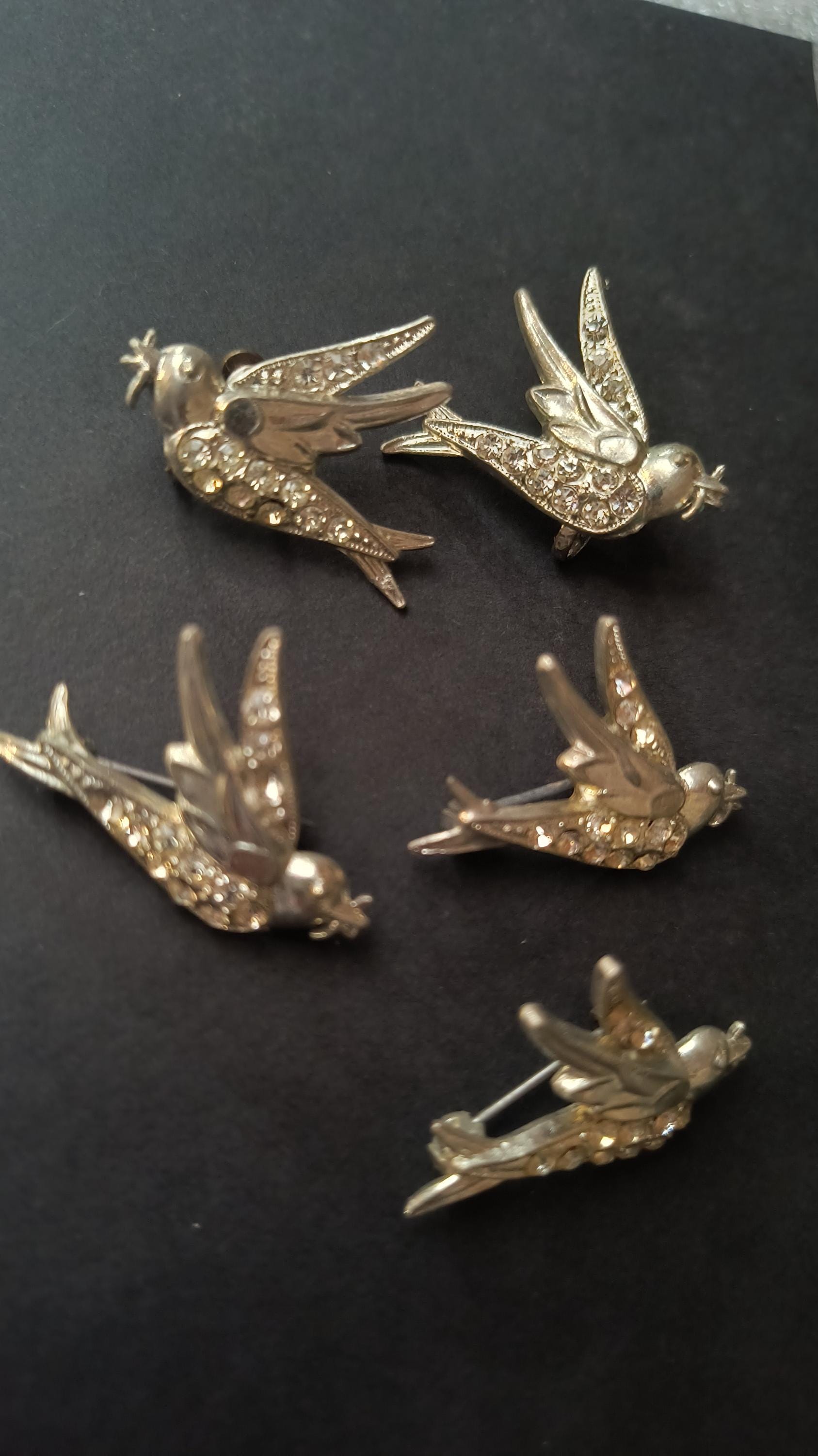This set is wonderful, a true bit of history from the 1940s or early 1950s! There are three pins here, meant to be worn scattered across a dress or the lapel of a jacket. The birds are swallows, popular during the Victorian period as symbols of travel and freedom - and before that, across cultures, for centuries.