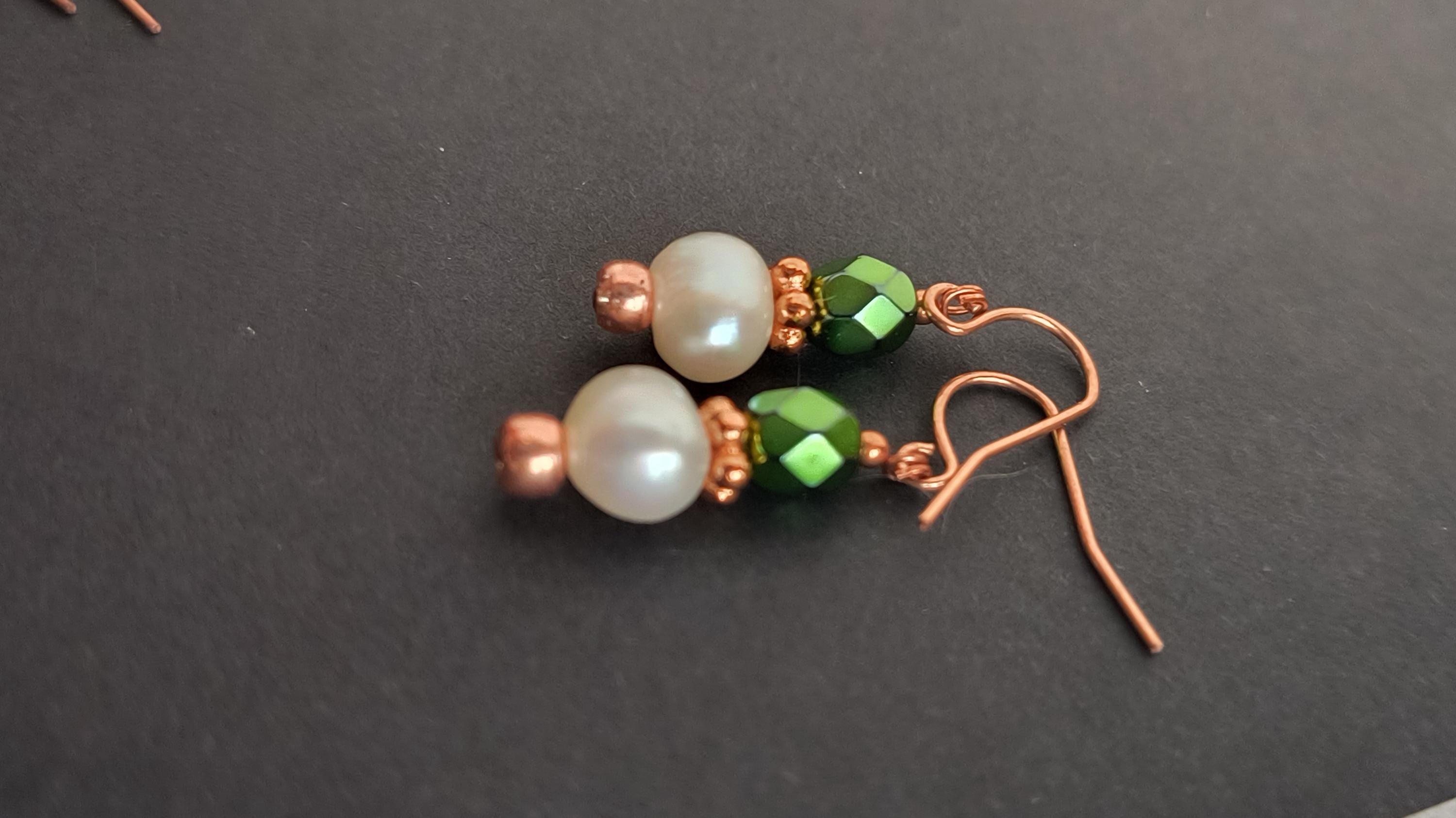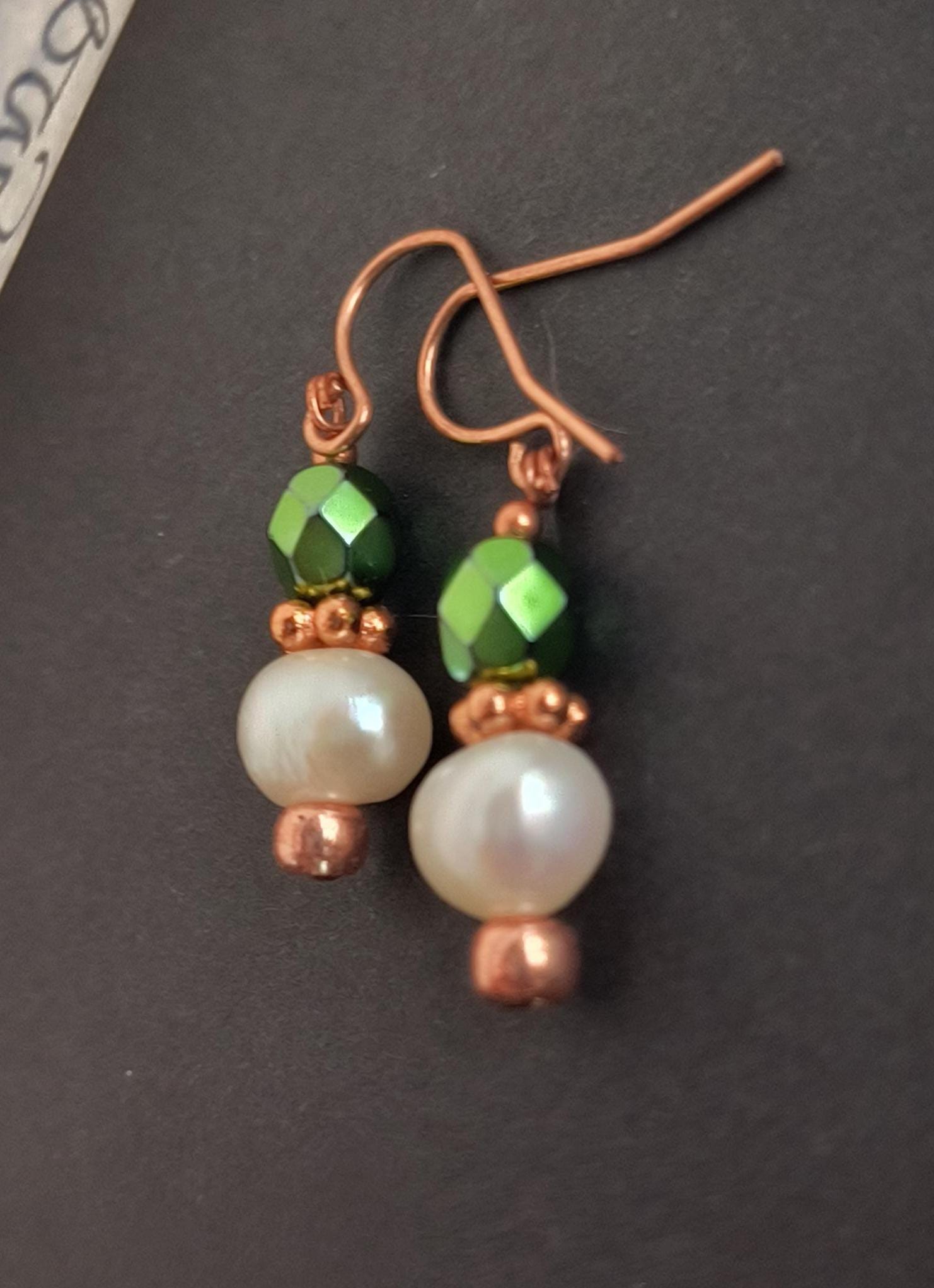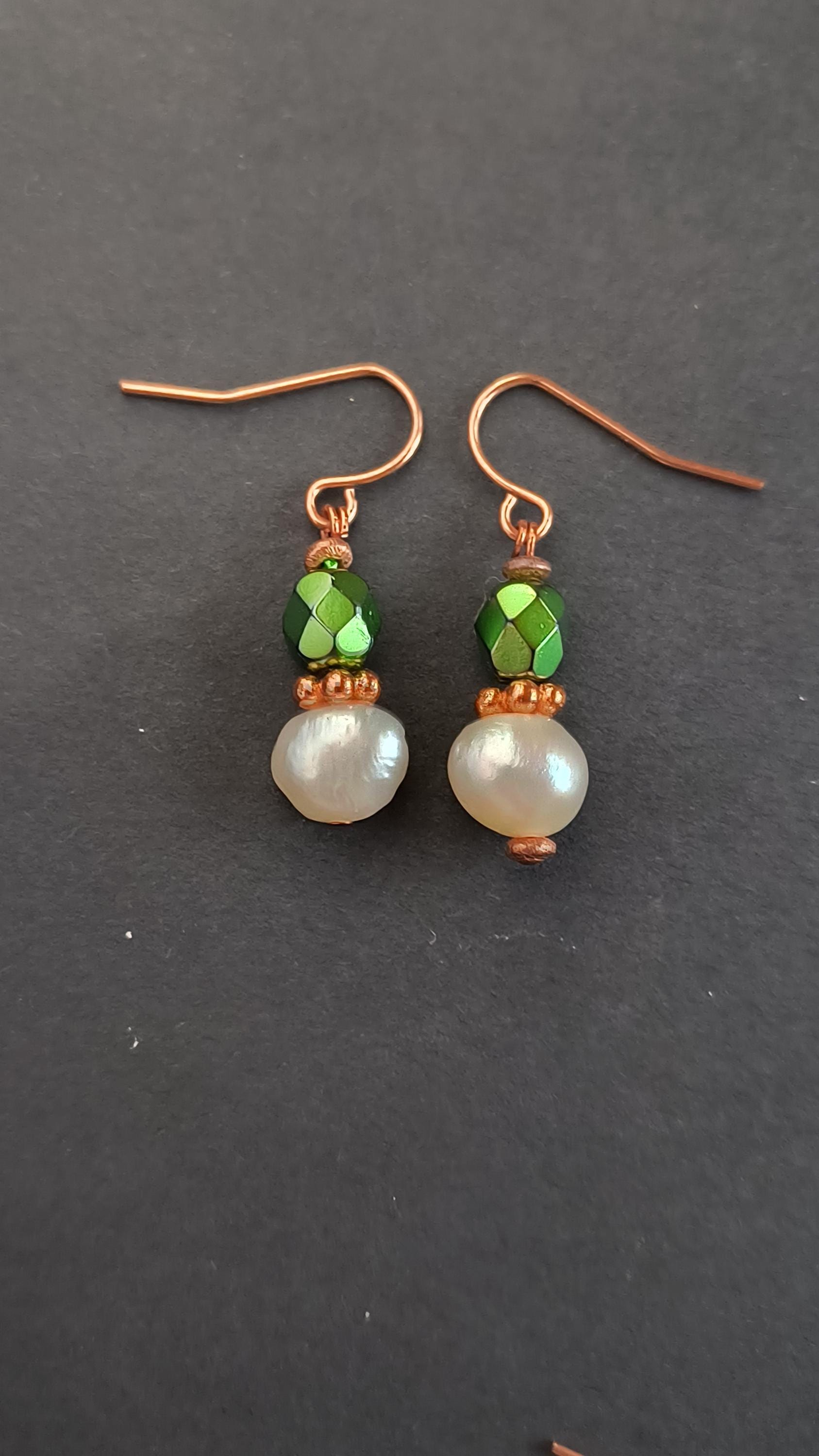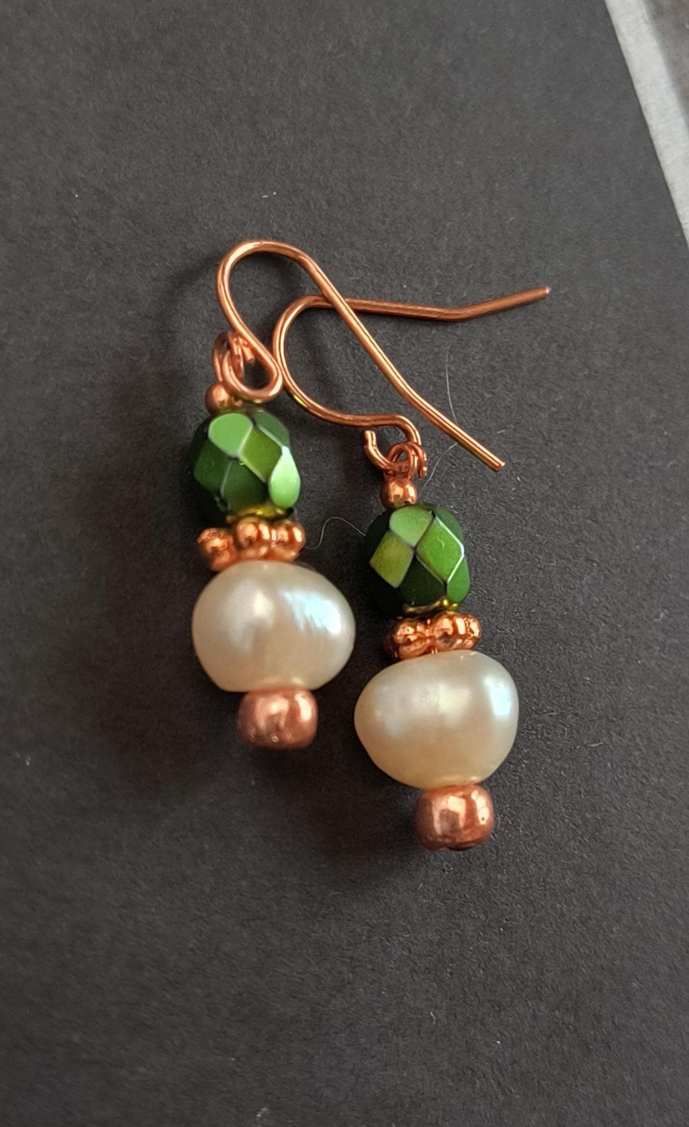 GEM: Freshwater Pearls, Emerald Green Czech Crystal Beads