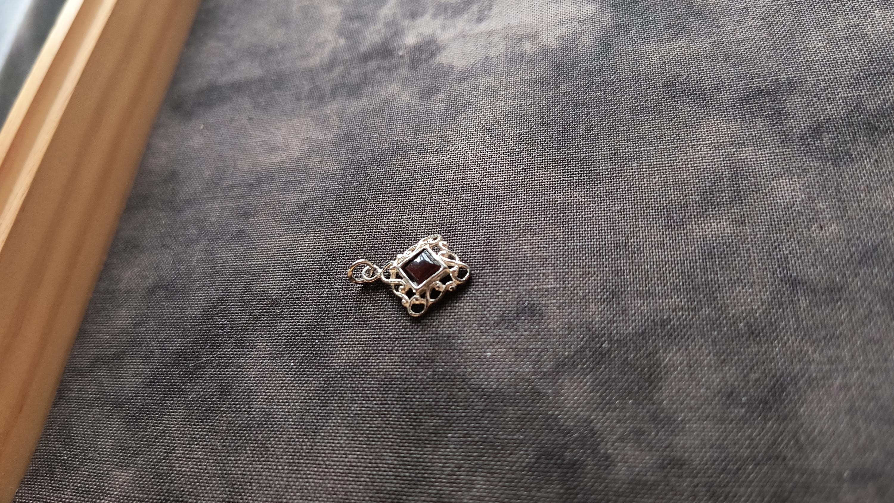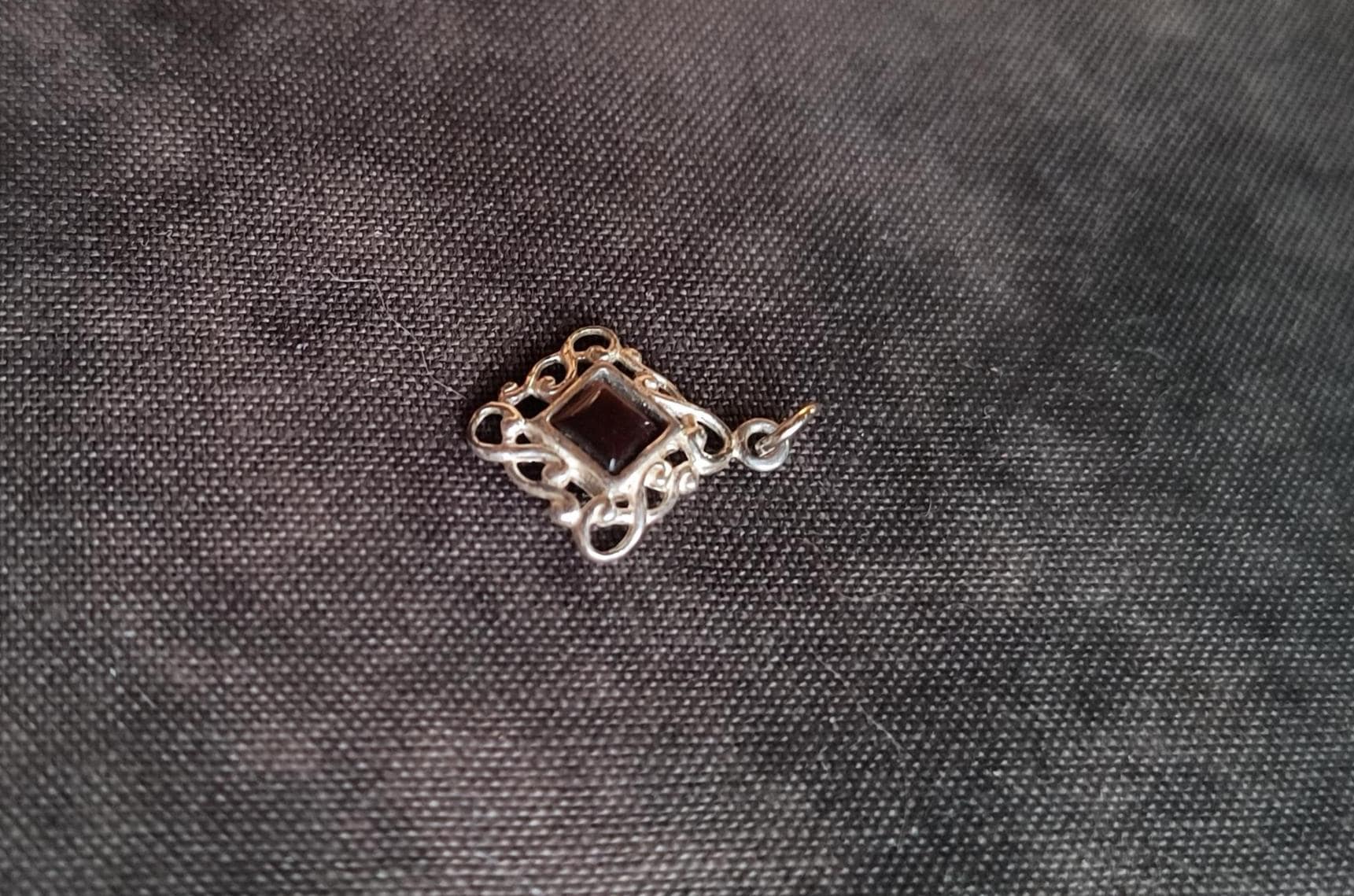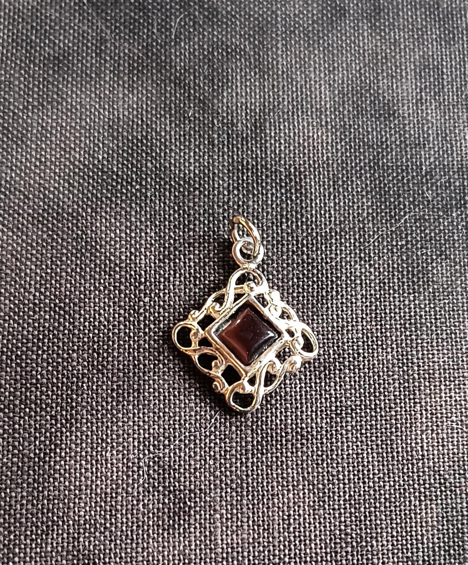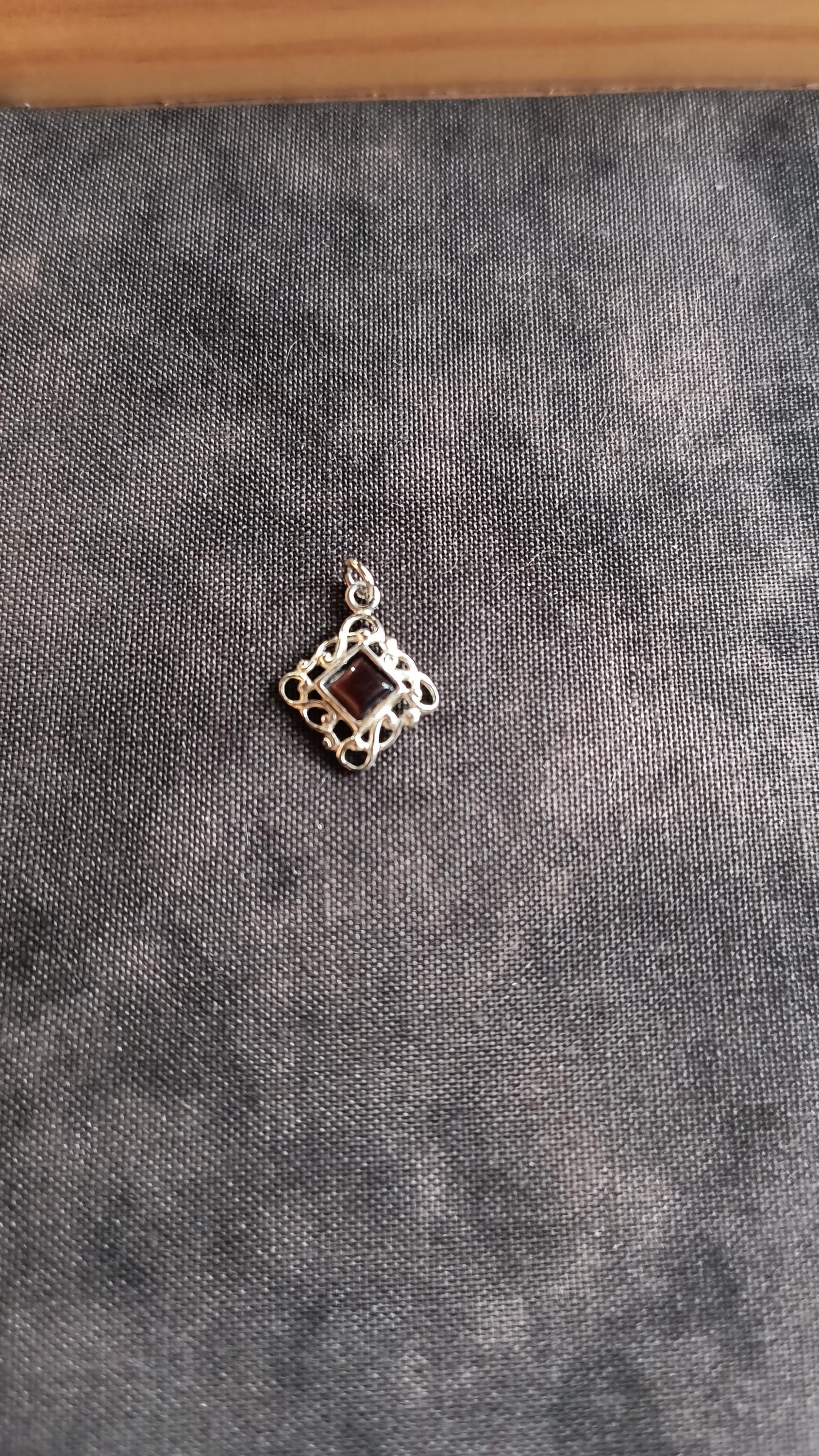 SIZE: 10mm square, 2mm bail, 18 inch silver plated chain