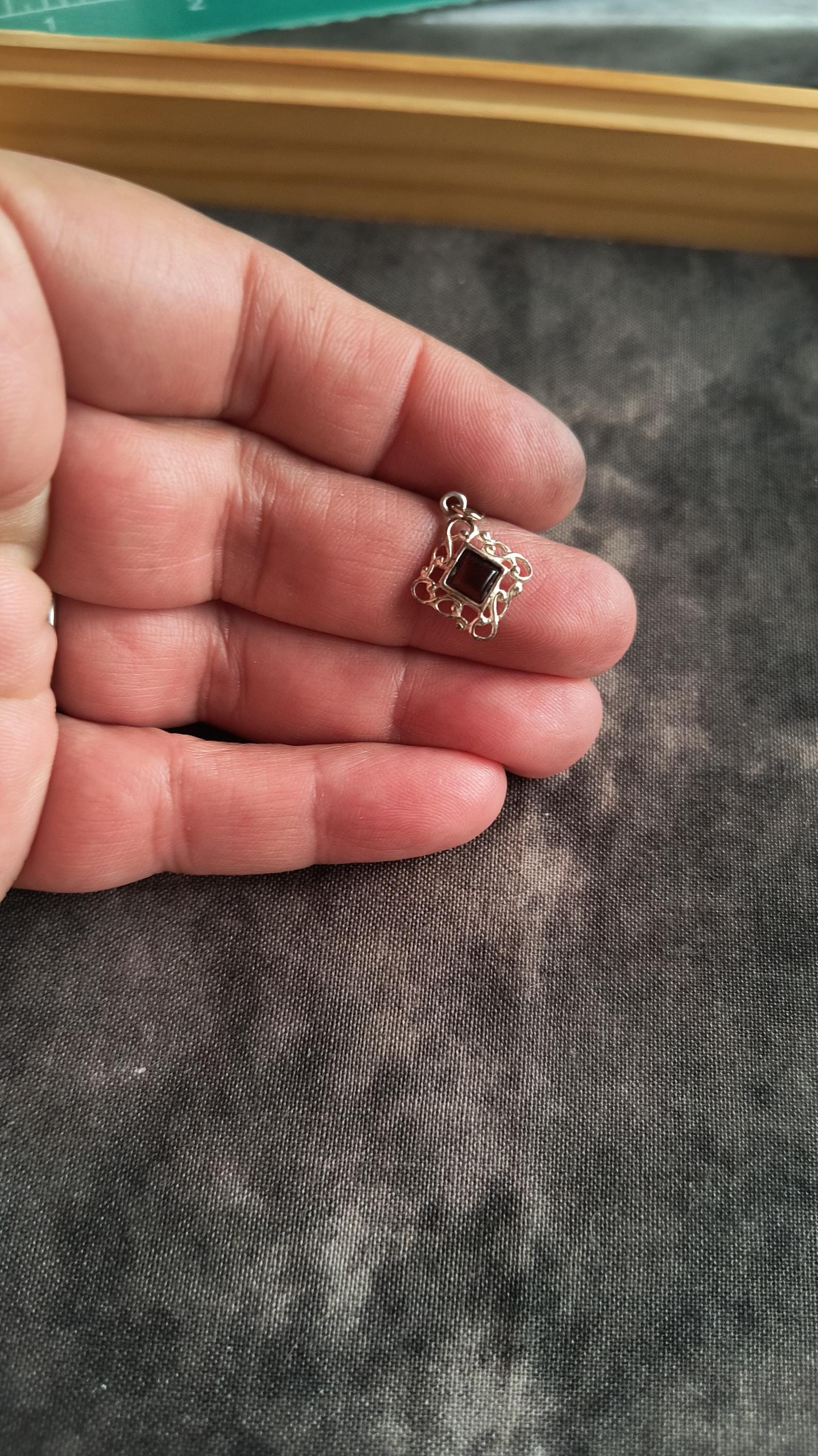 The center piece of this pendant is a lovely Mahogany tiger's eye with a great cat's eye effect in some of the stripes. The setting is sterling silver and vintage, and gives a Celtic knotwork and braid sort of vibe! This arrives with an 18 inch silver plated chain, and in a box suitable for giving.