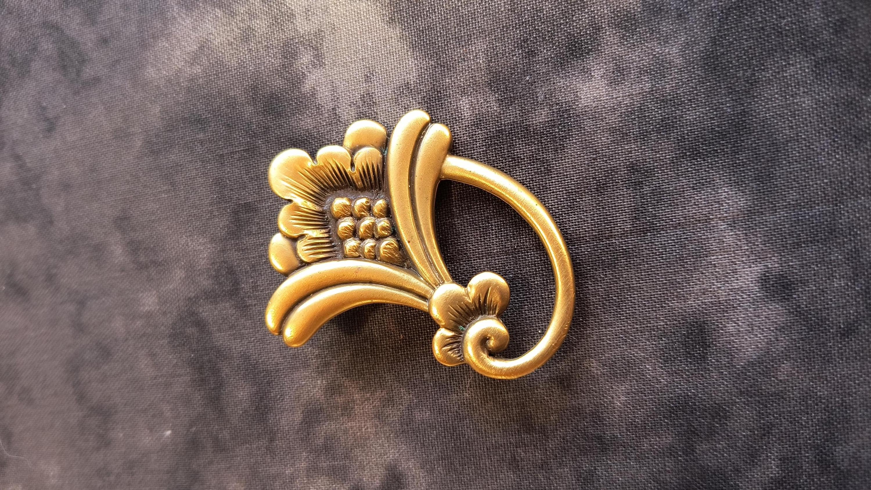 Just gorgeous! The lotus blossom in a symbol of eternal life in Egyptian Mythology, and here an ancient jewelry piece has been reproduced in gleaming, brushed gold. In the Mid-1900s, the reproduction of Museum pieces became hugely popular, and collector's quality jewelry like this were sought after and valued!