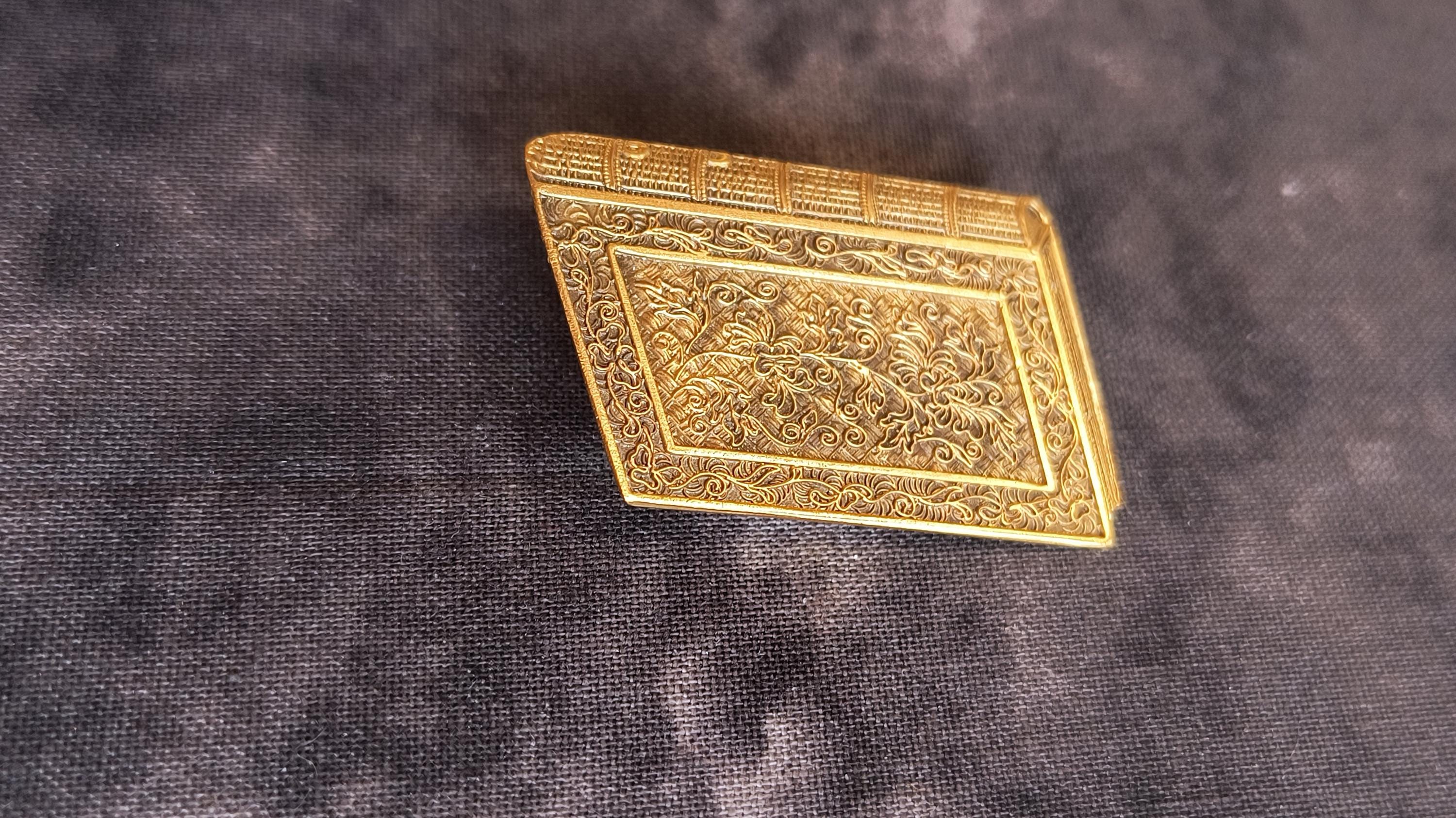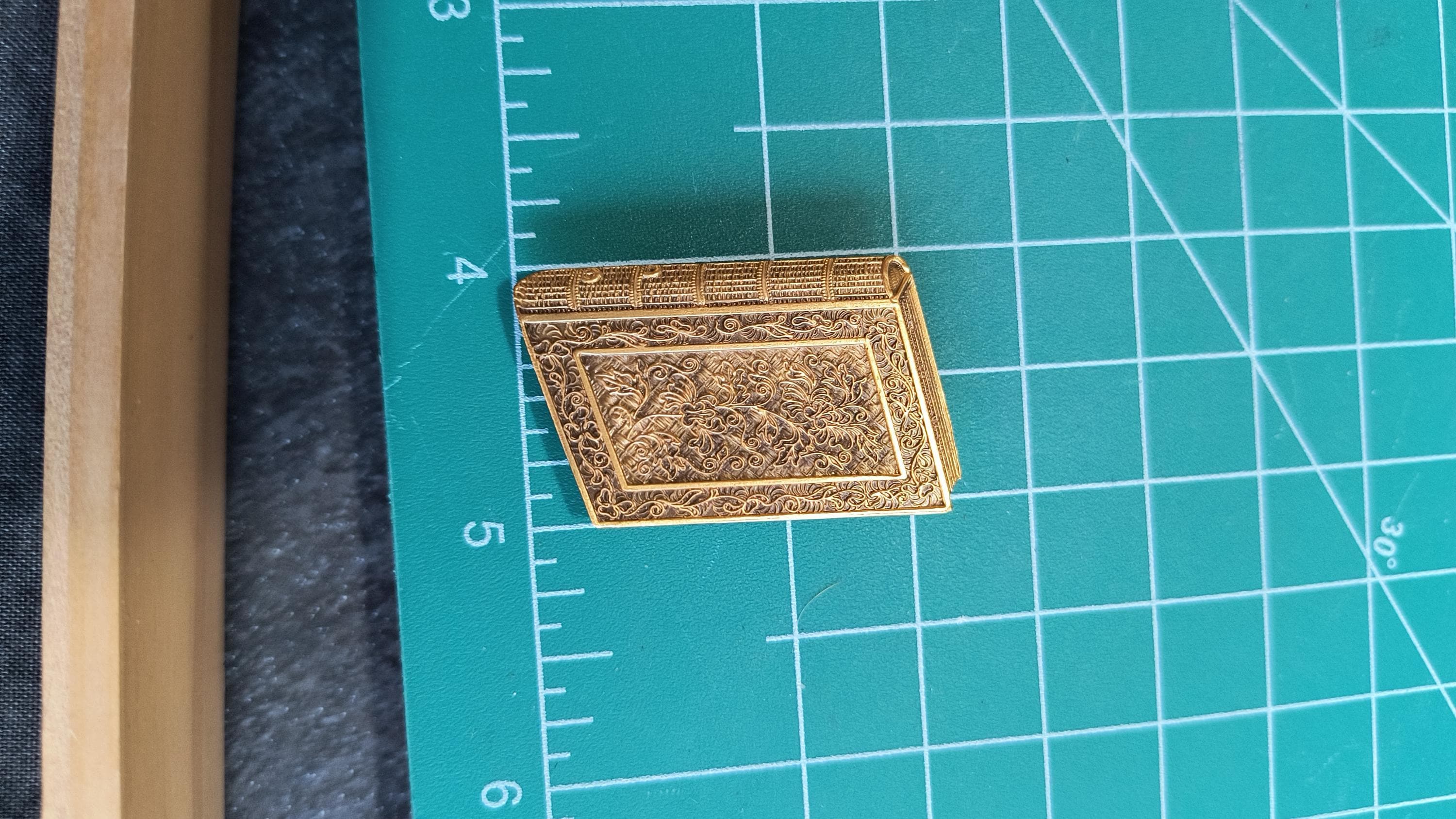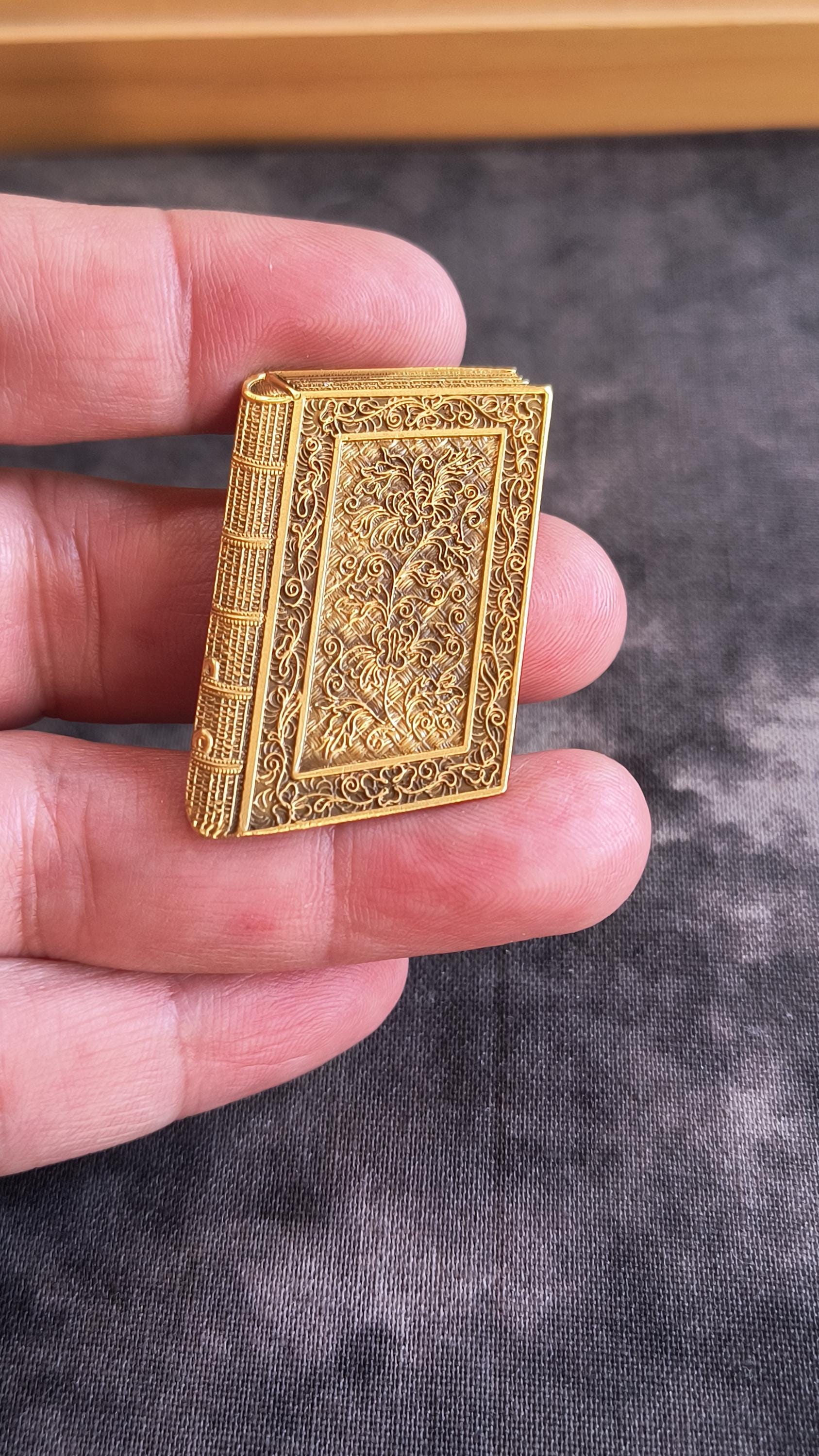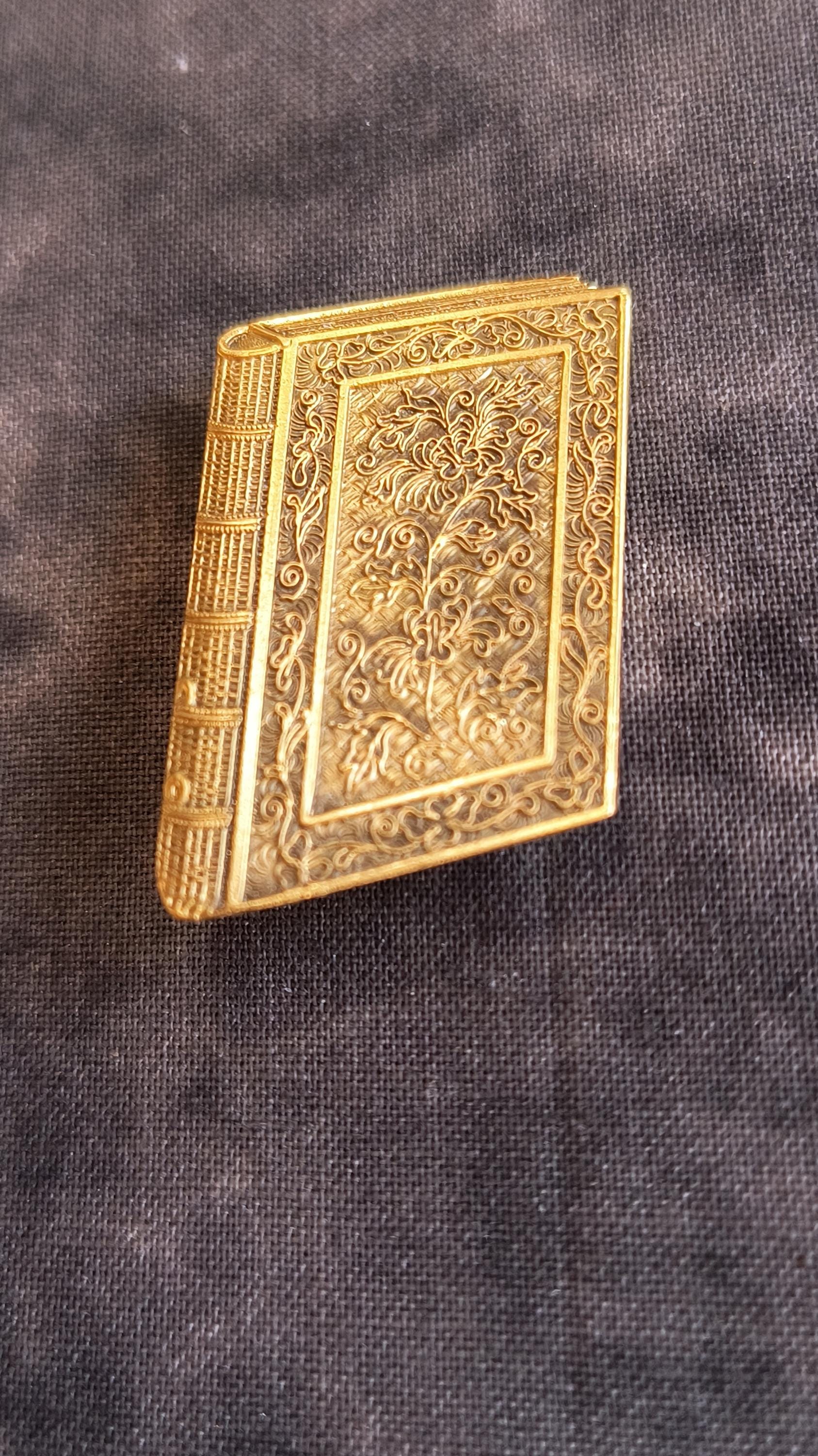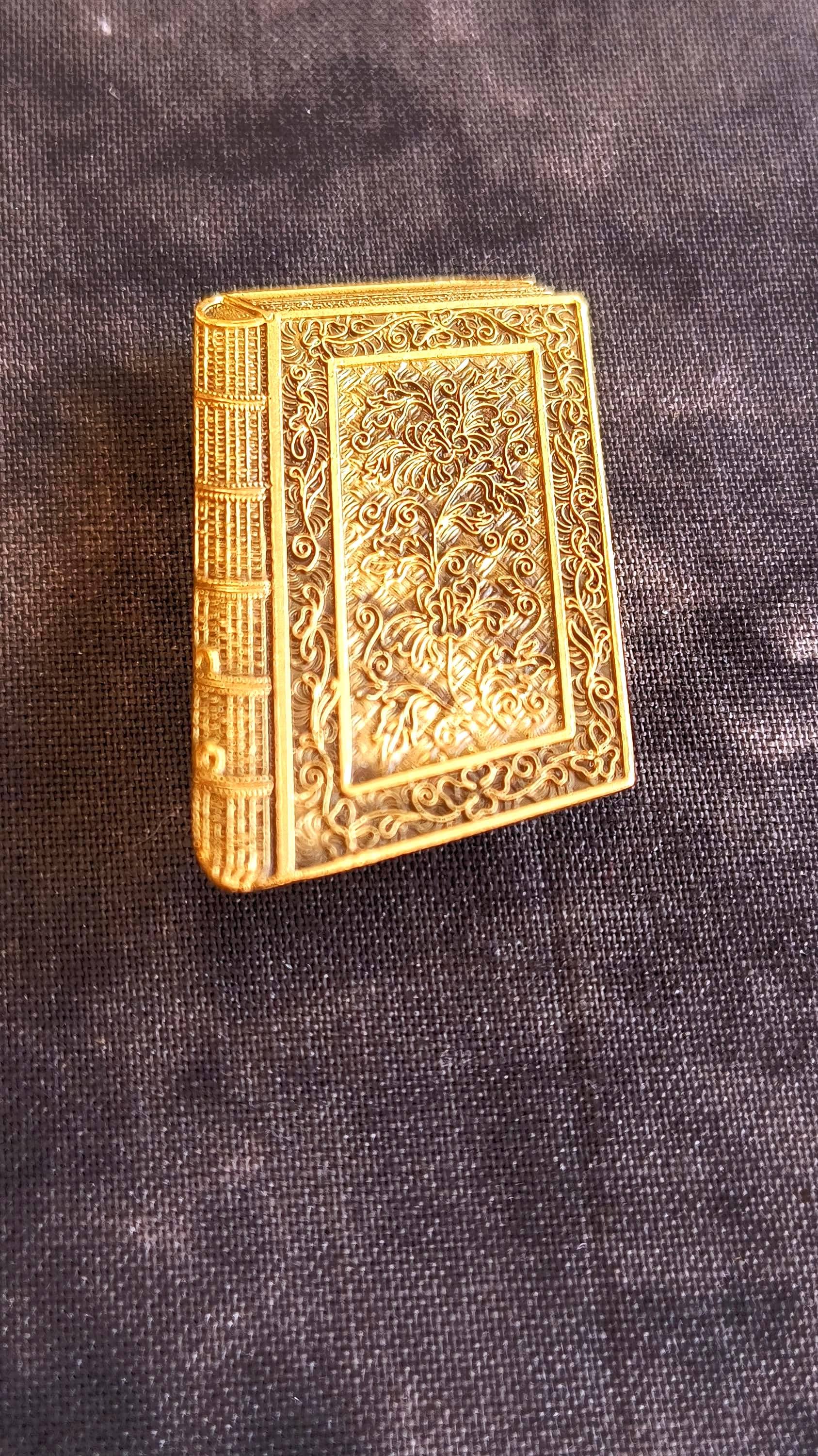 Filigree metal twists and turns into the shape of a sweeping tree on this vintage brooch. This is a reproduction of an antique book - Persian poetry if I remember correctly - that is in the collection of the Peabody Essex Museum in Boston, Mass.