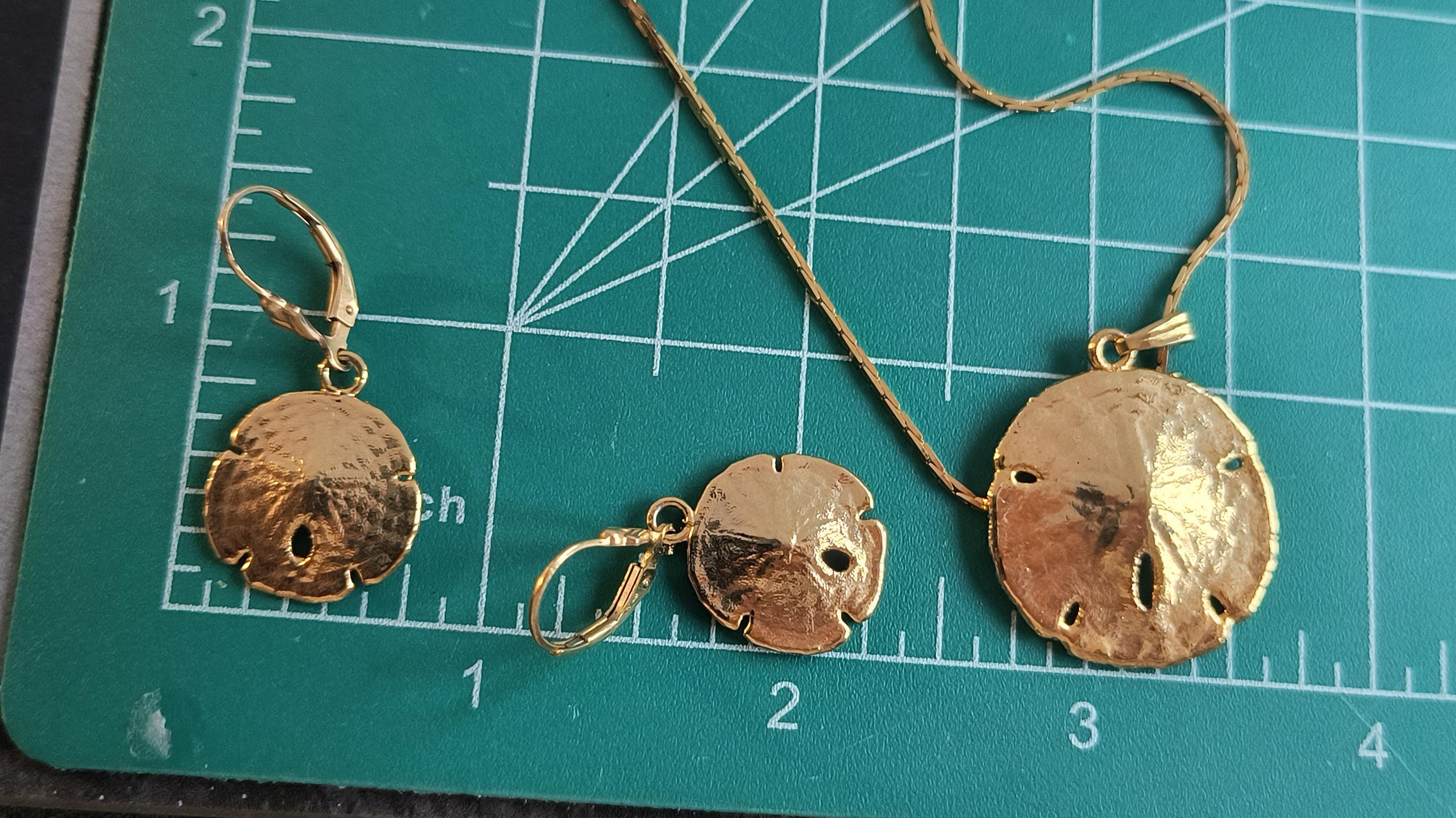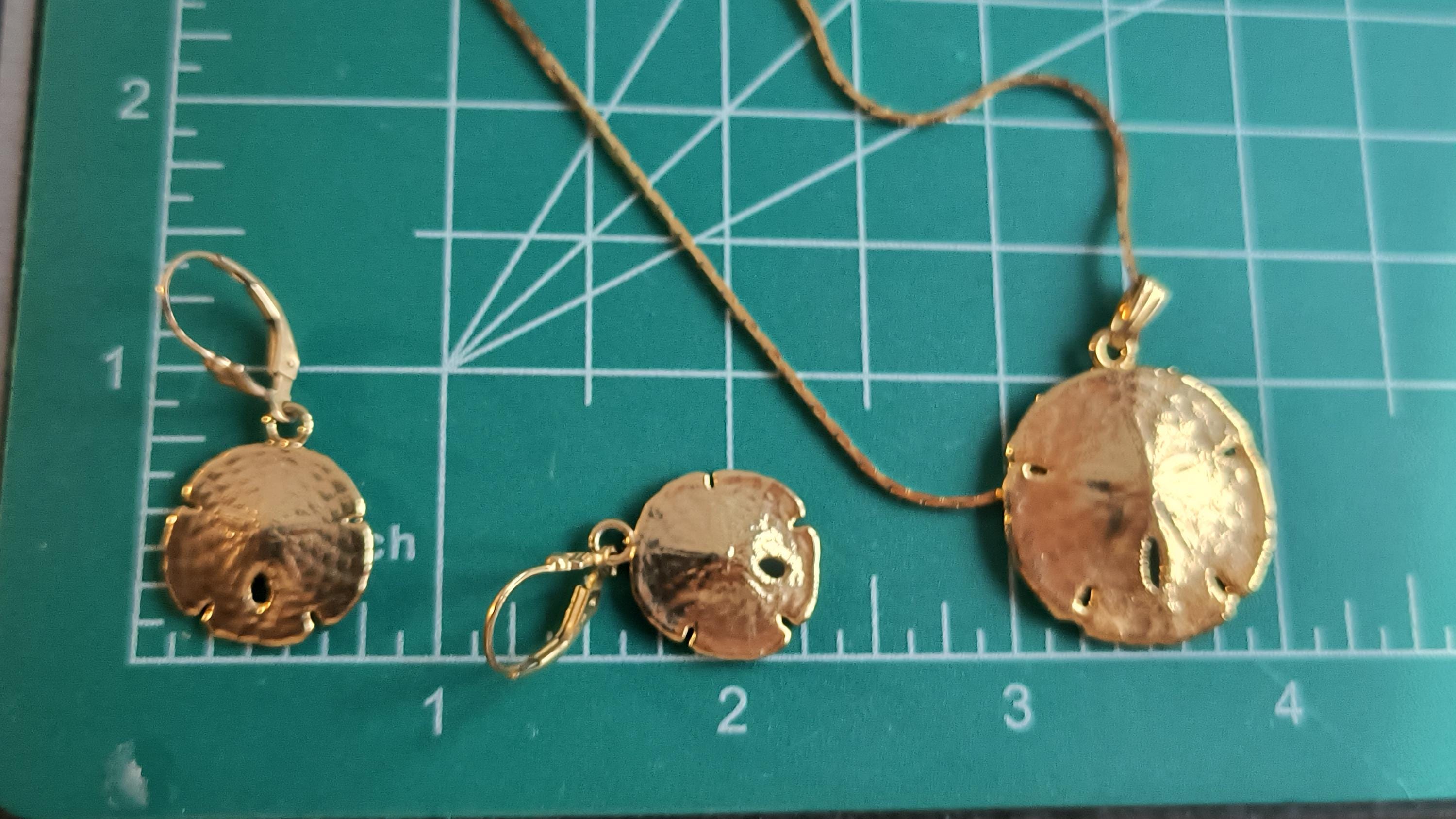 METAL: 18 and 14K Gold Dipped Sand dollars and gold plated chain