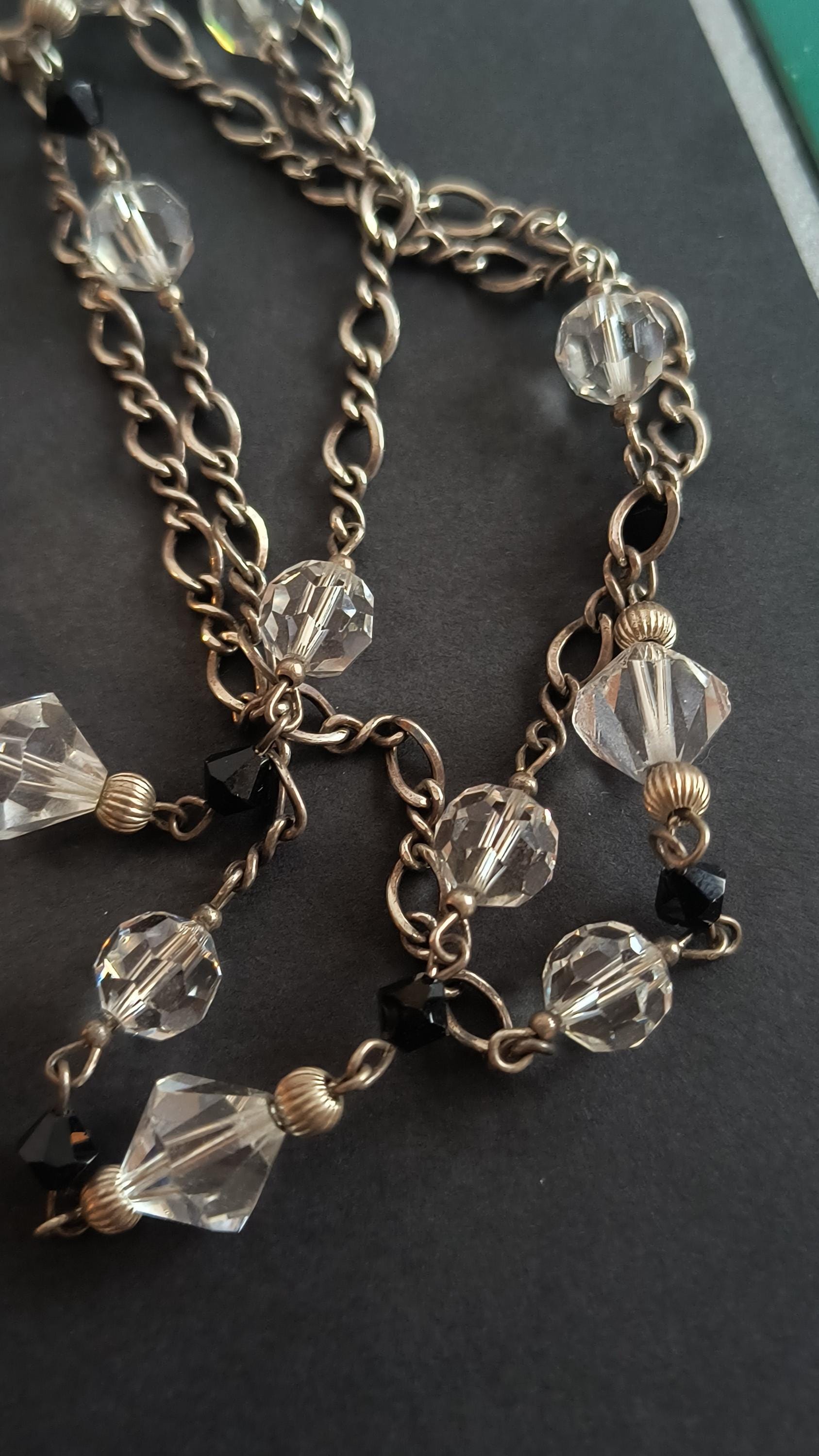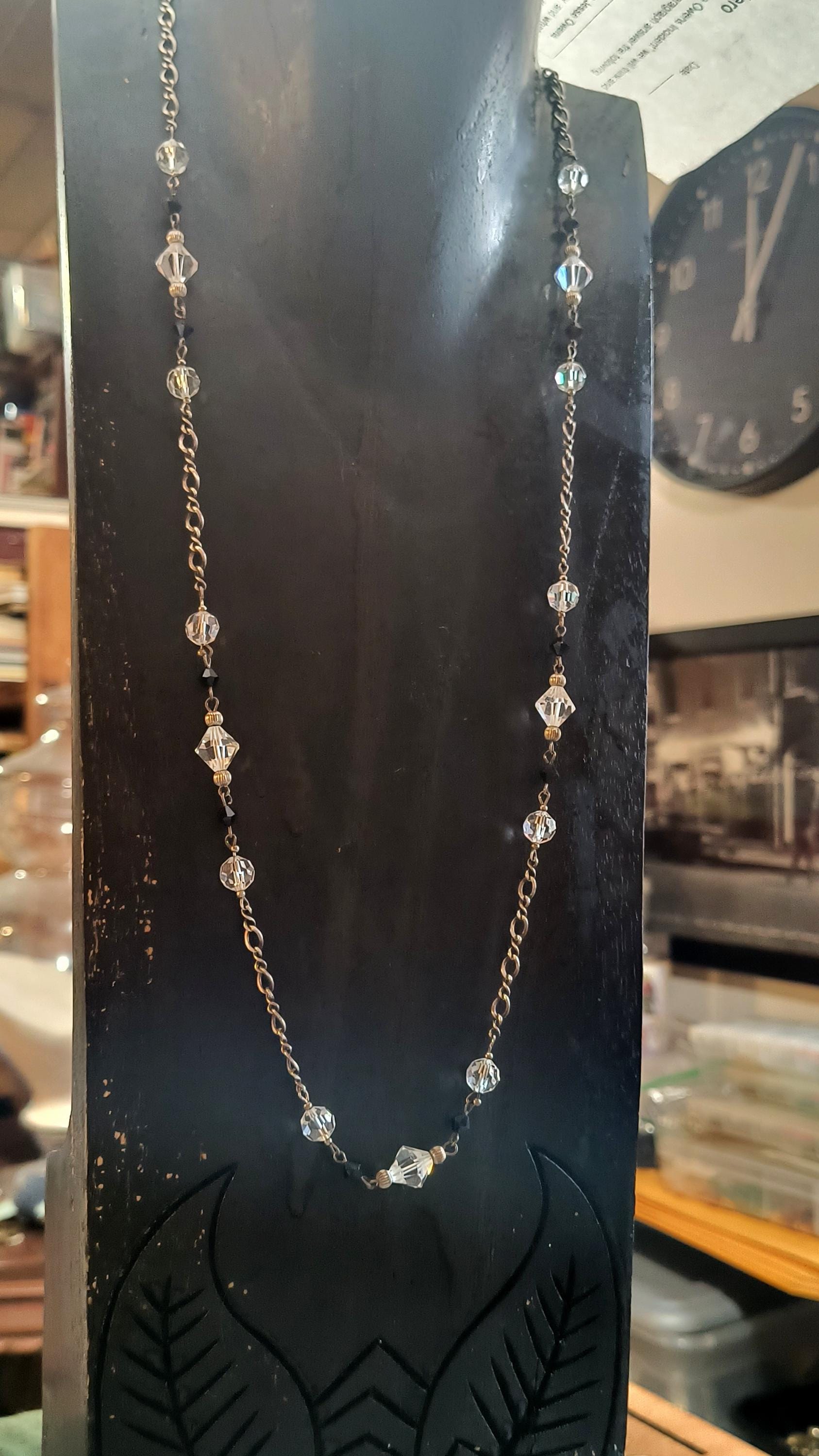 HEre's a great piece of vintage jewelry that goes with anything! The chain I wide and flat, which will keep the piece from twisting around too much when worn. This is going to be great layered with other vintage necklaces!