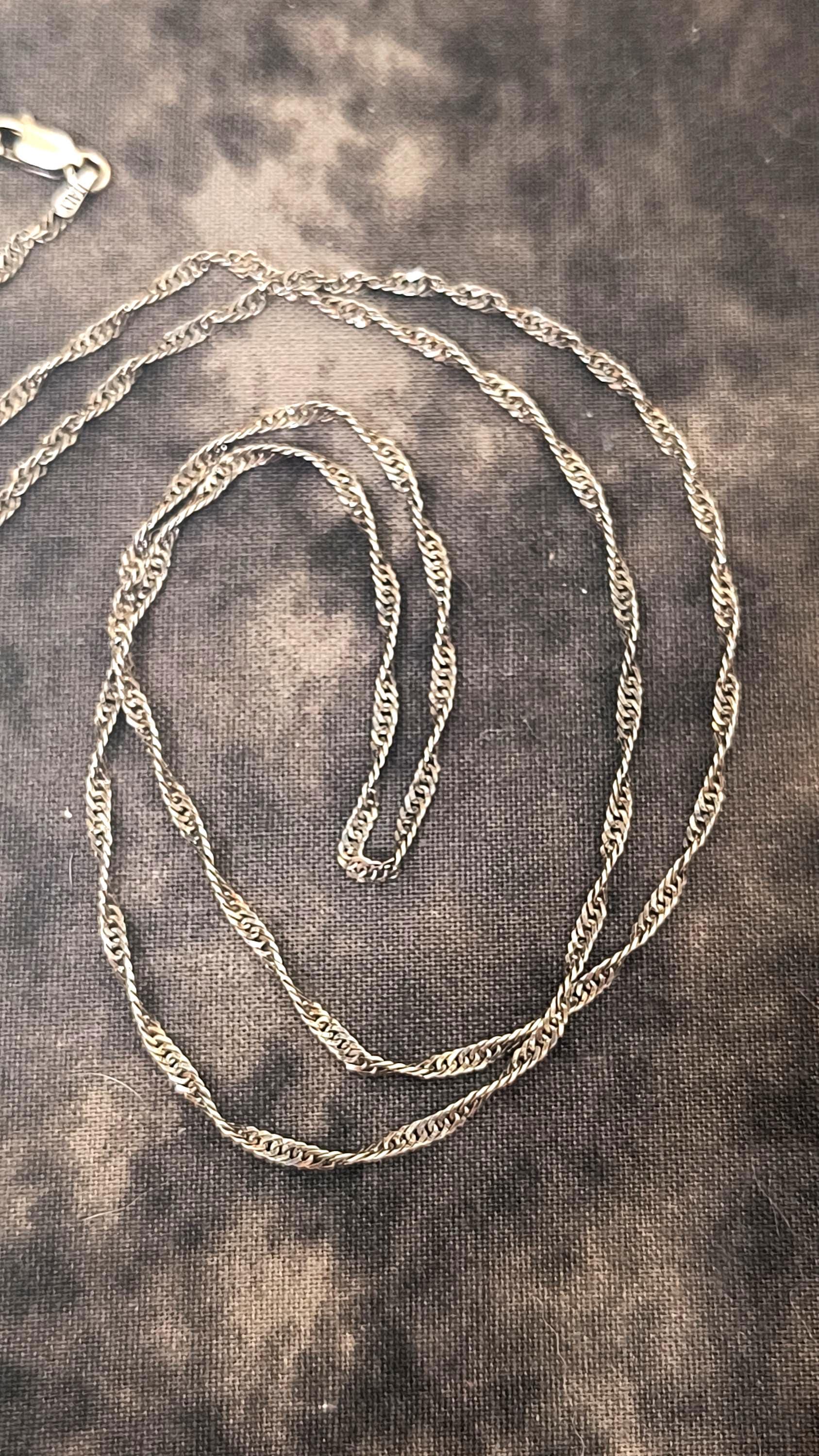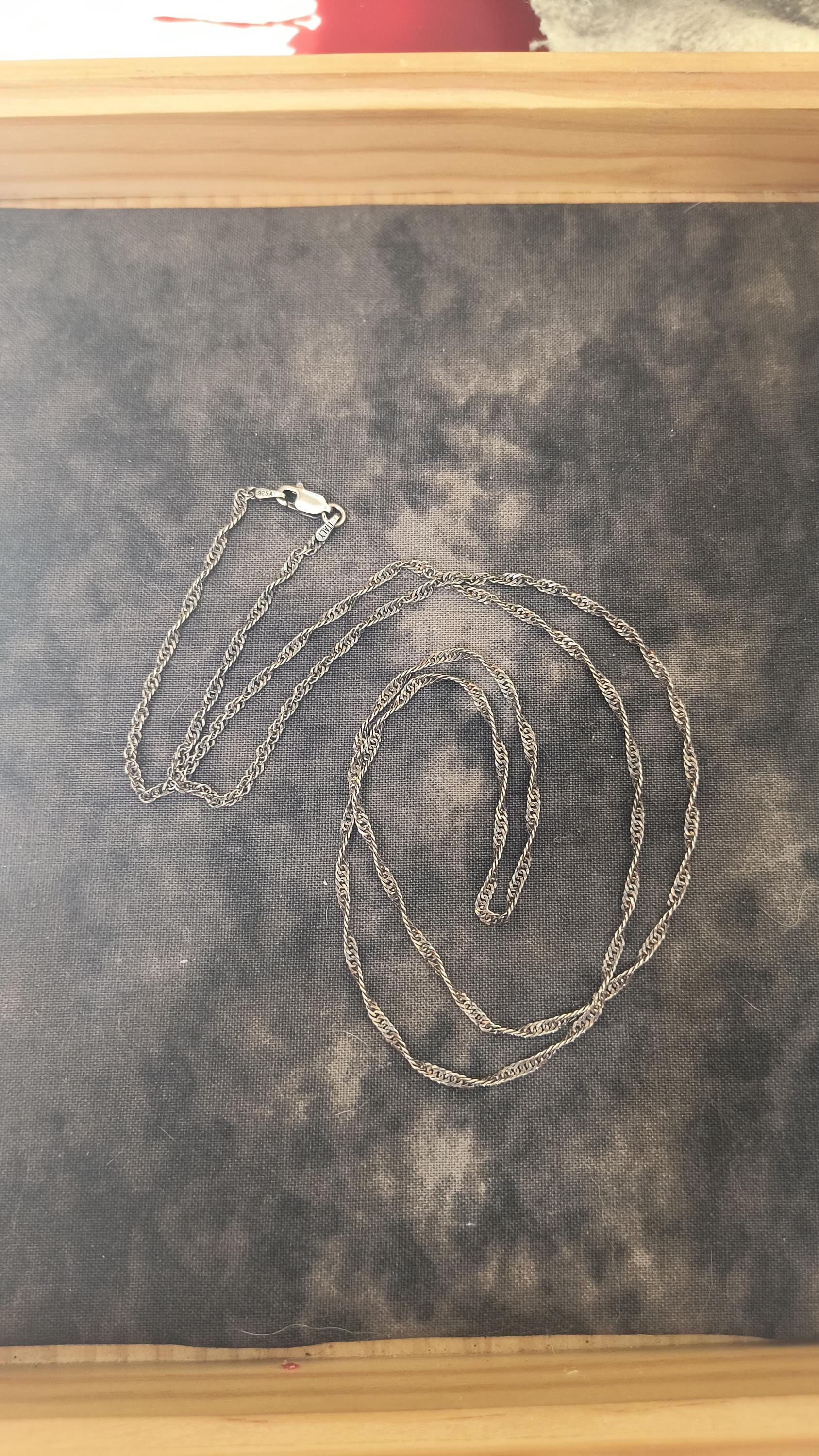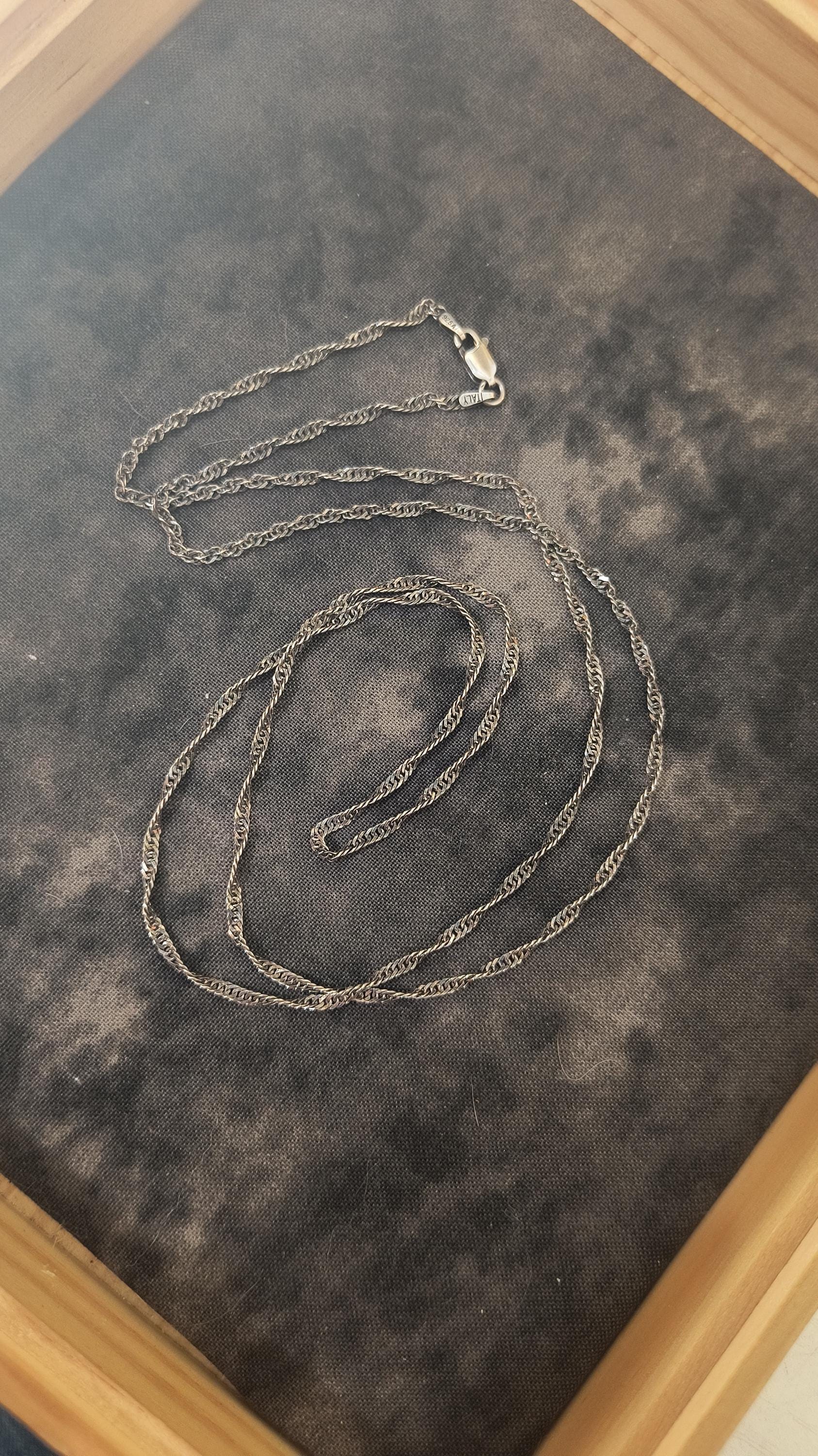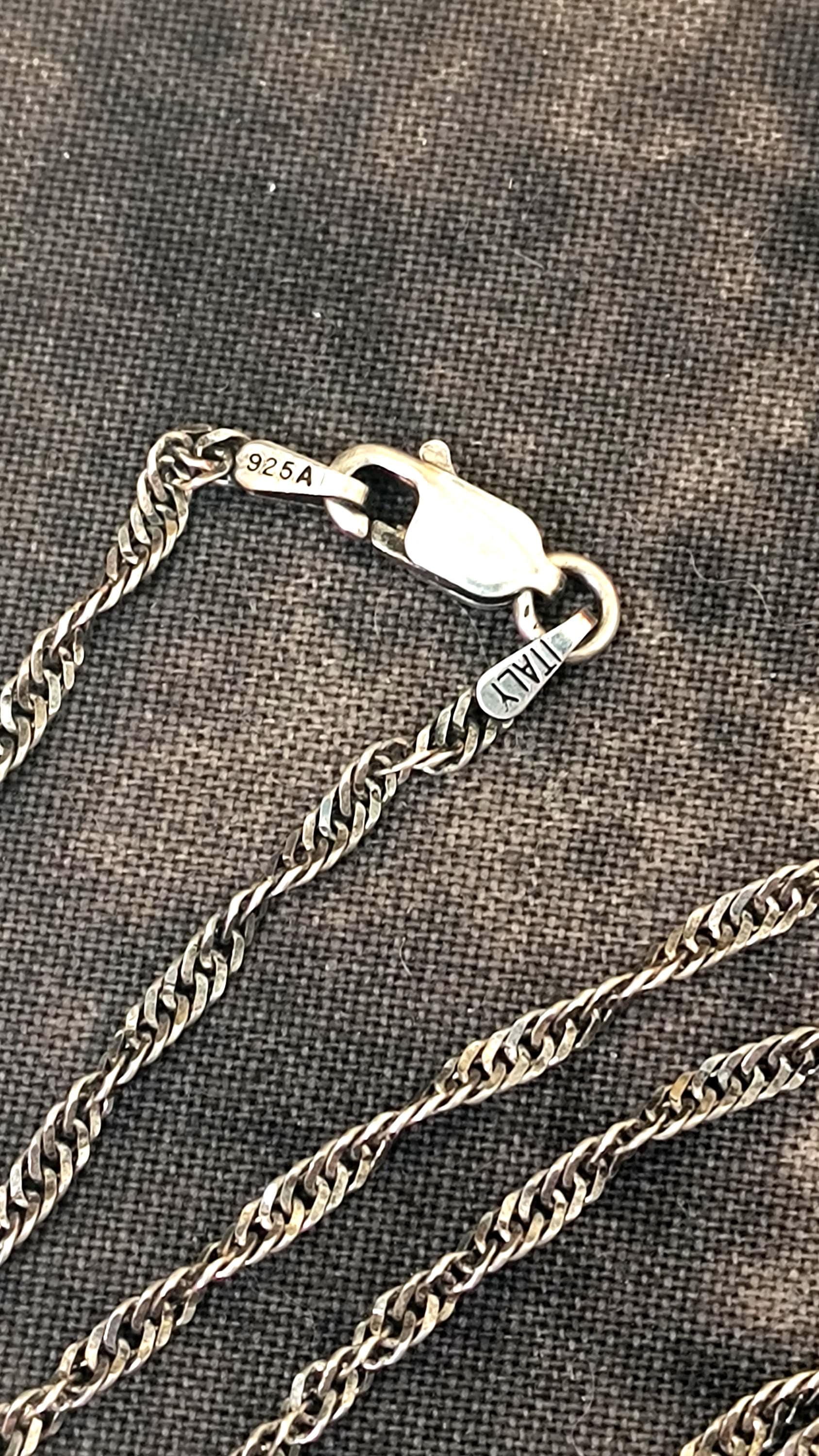 SIZE: 20 inch chain, 2mm wide, lobster claw clasp