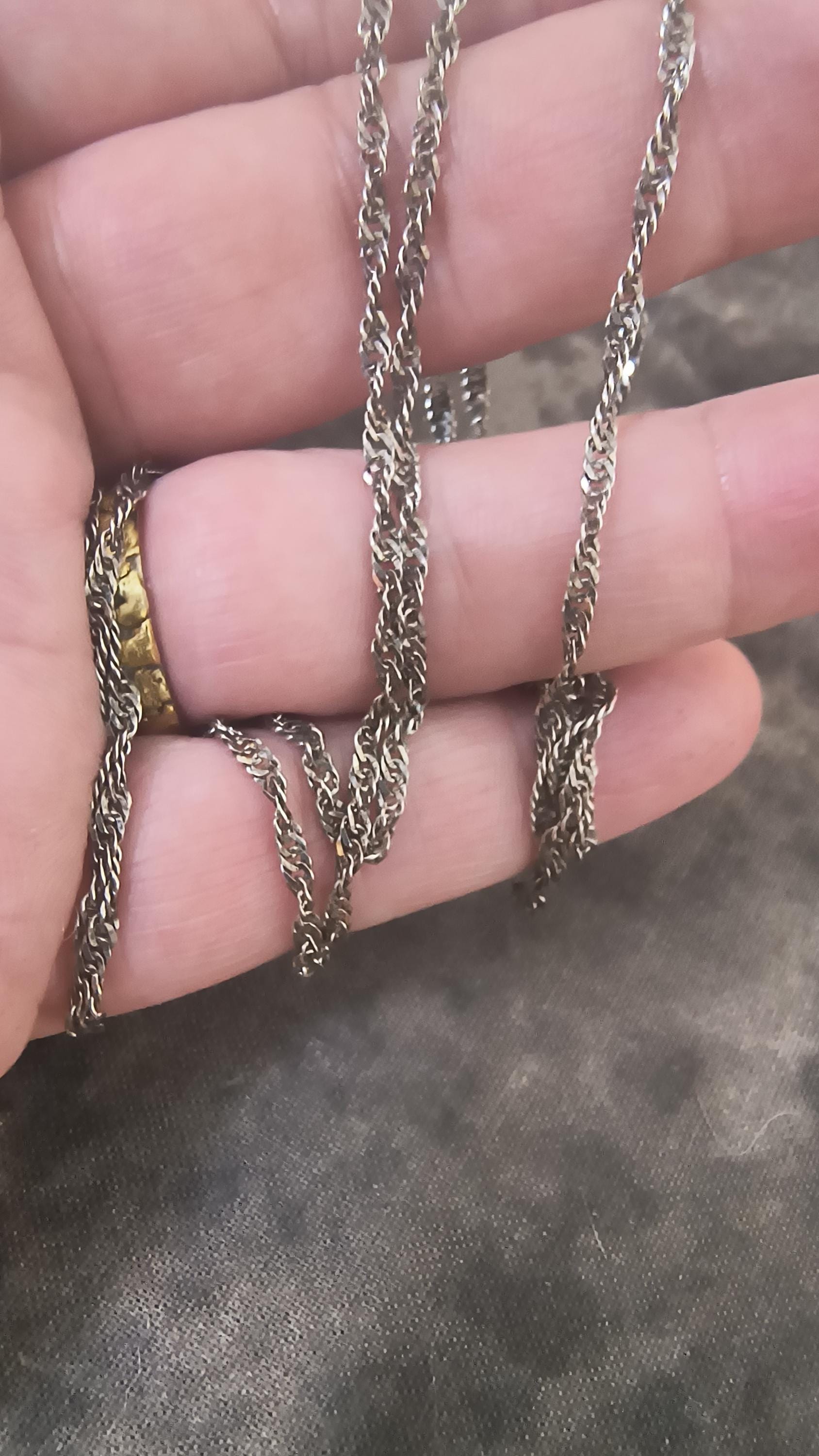 This vintage chain is well made, with a flexible curb link. It measures 2.5mm inches long, and suitable for wear by a man or woman, perfect with a cross or medal!