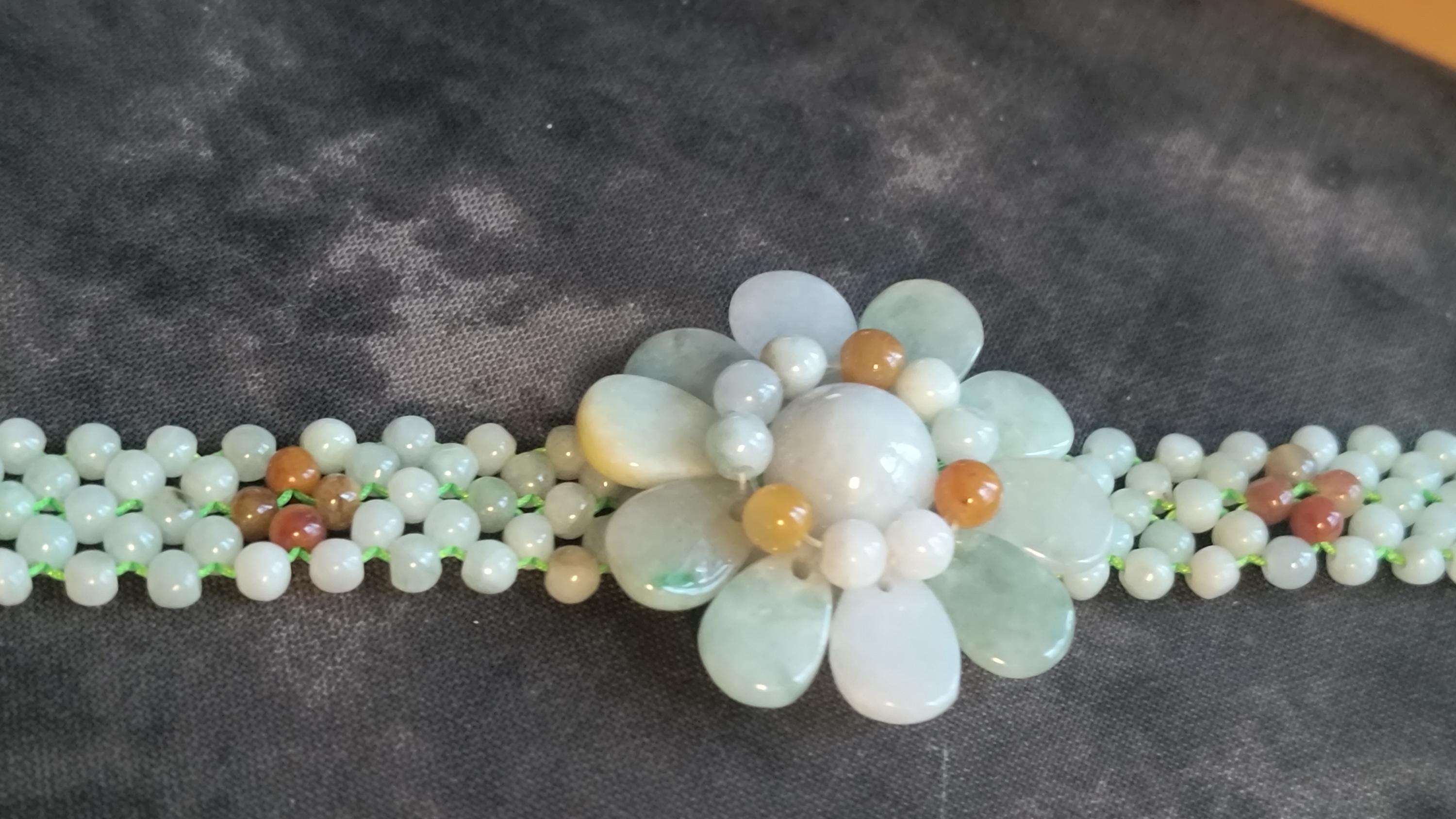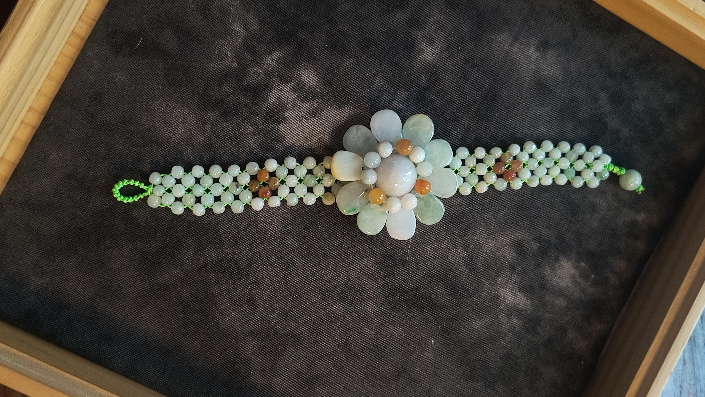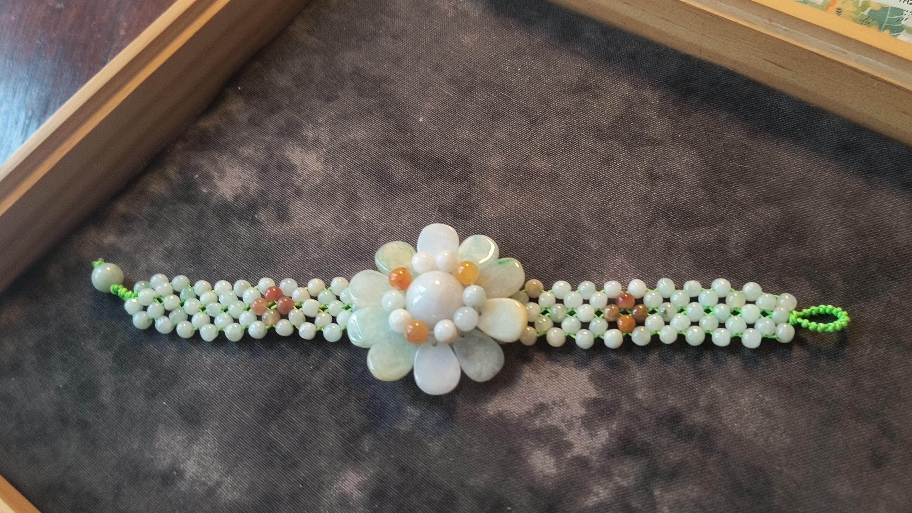 Refresh your Spirit for spring with this pretty Jade flower bracelet! This is so cheerful, bold and Bright without being overly childish or cartoony.