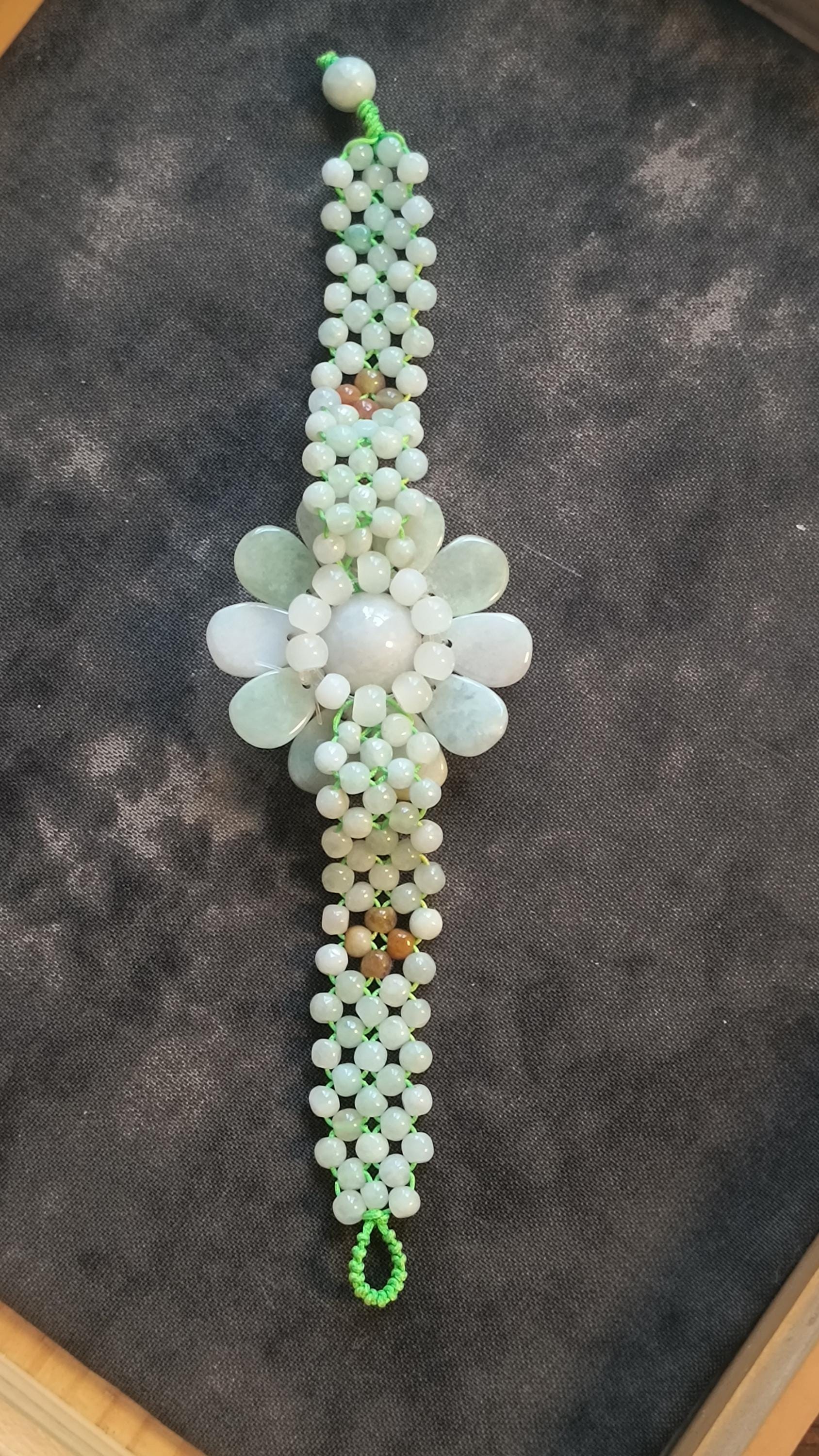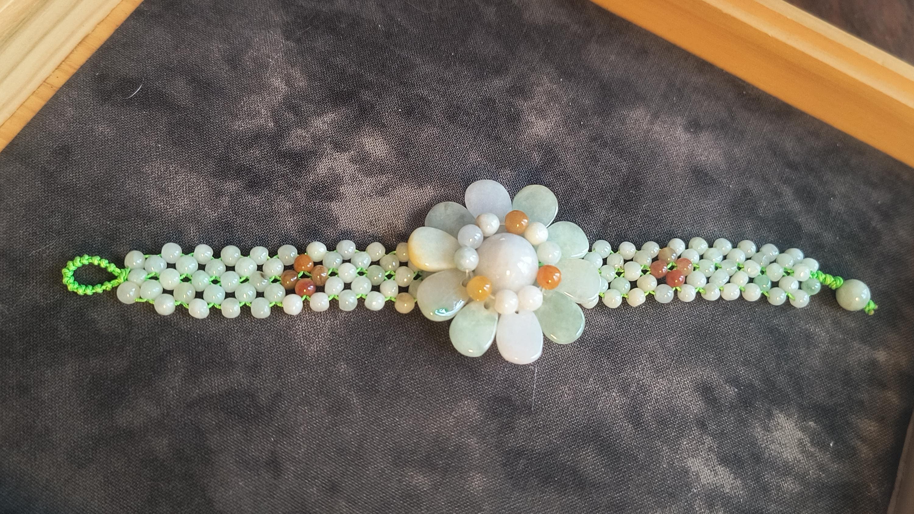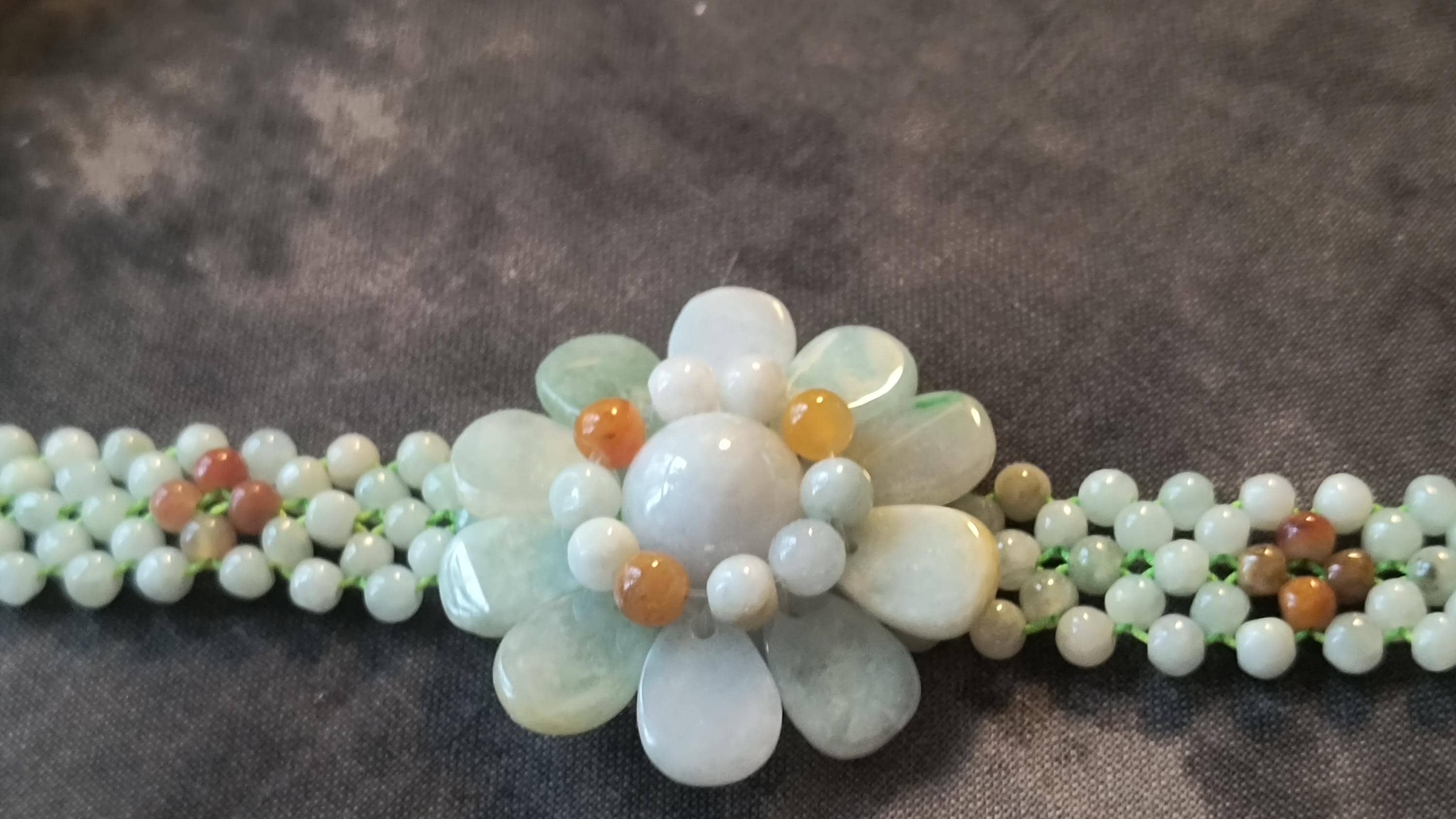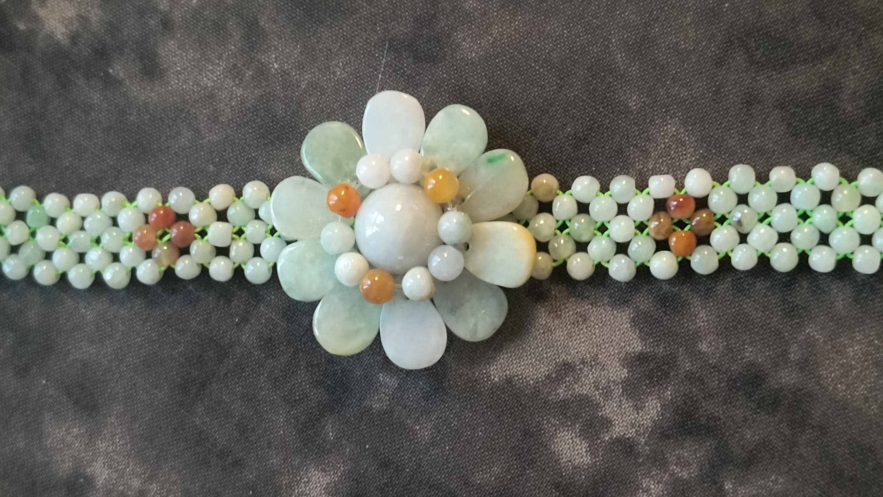 Refresh your Spirit for spring with this pretty Jade flower bracelet! This is so cheerful, bold and Bright without being overly childish or cartoony.