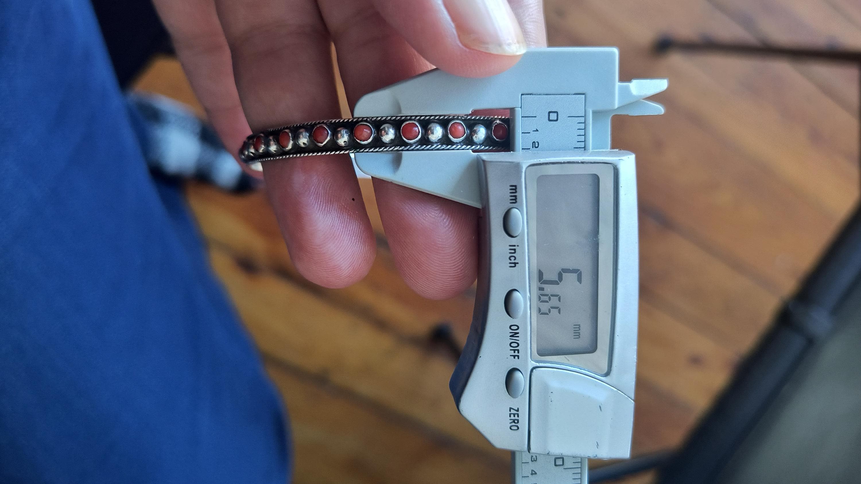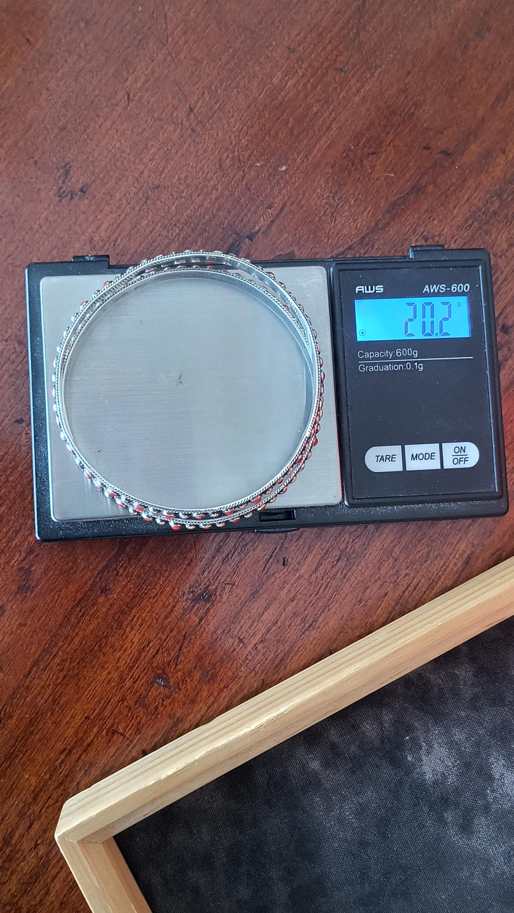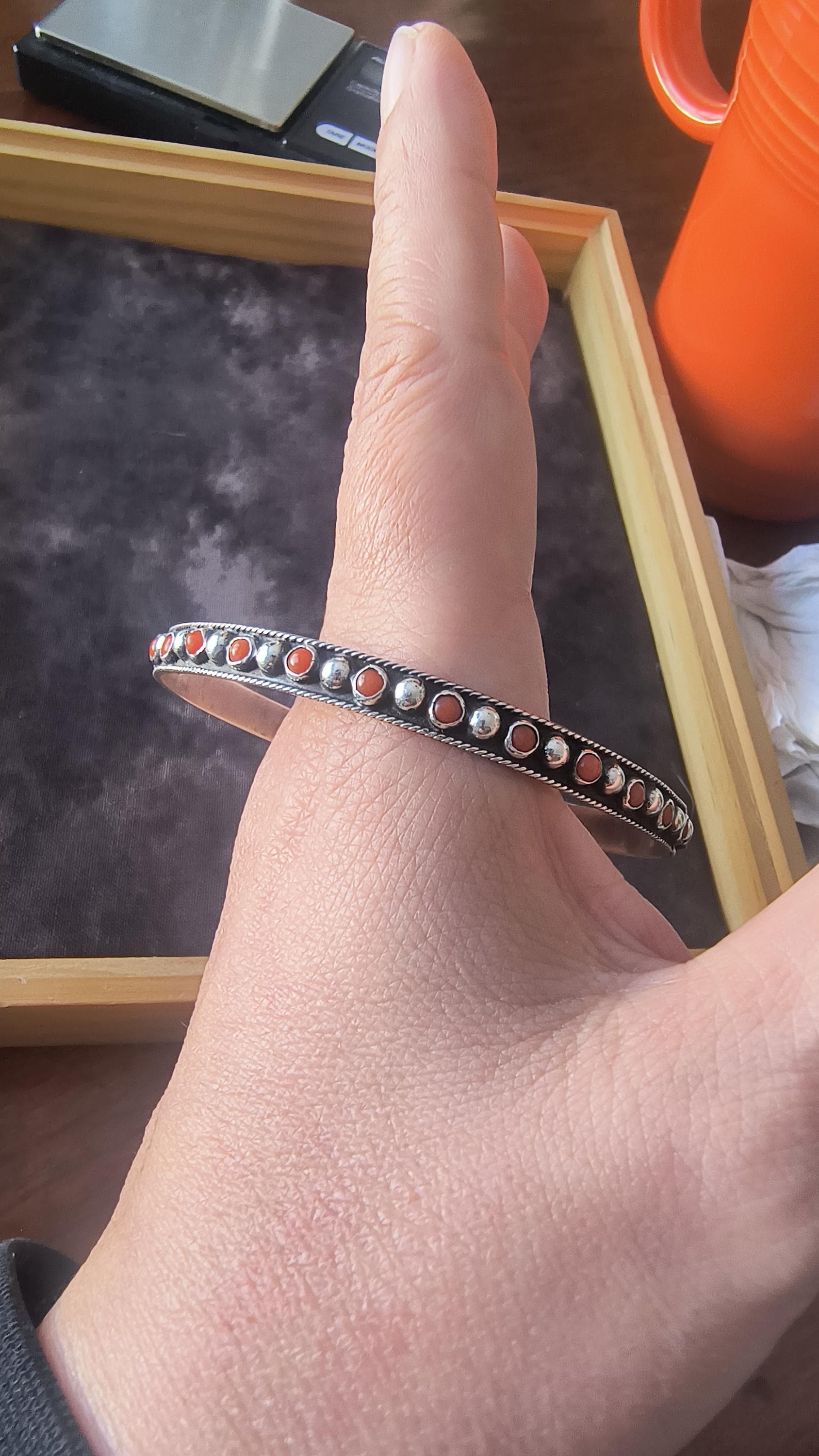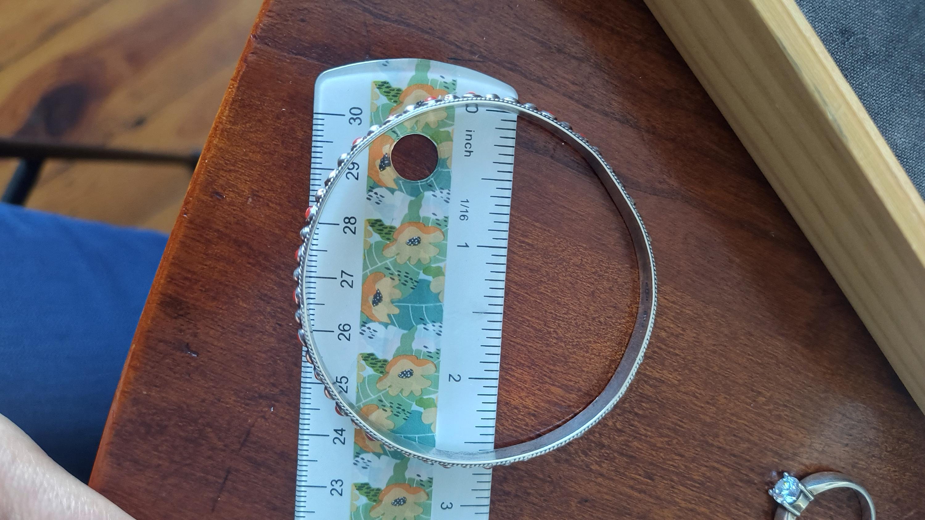 GEM: Natural red coral cabochons - please note that one gem is missing in each bangle. Replacement gems may be available, please reach out for details.