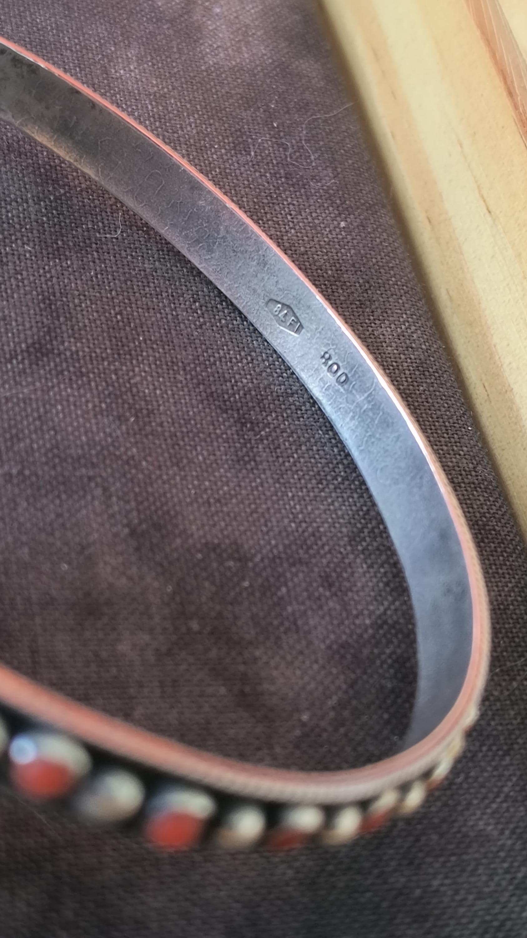 These simple bangle bracelets date to the 1980s or even a bit earlier. The coral is natural, and of a deep, rich red that is unusual to find in modern jewelry - it's been increasing in rarity day after day! The metal is .800 silver - silver that is 80% pure rather than the modern standard of Sterling silver, which is 92.5% pure. .800 silver was the international standard for centuries, and continued to be used in jewelry in certain places throughout the 1900's.